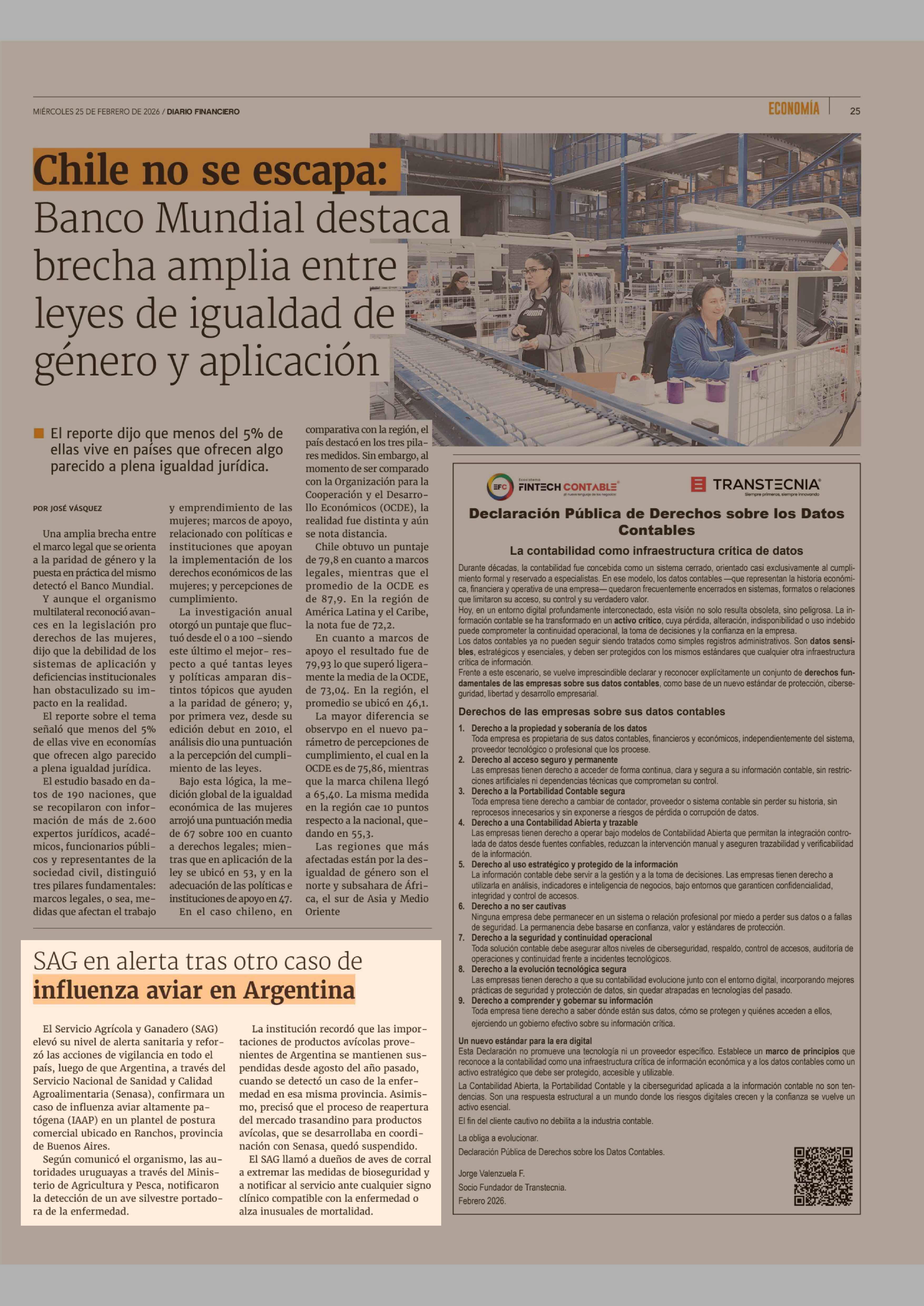 SAG en alerta tras otro caso de influenza aviar en Argentina 25-02-2026 Diario Financiero |