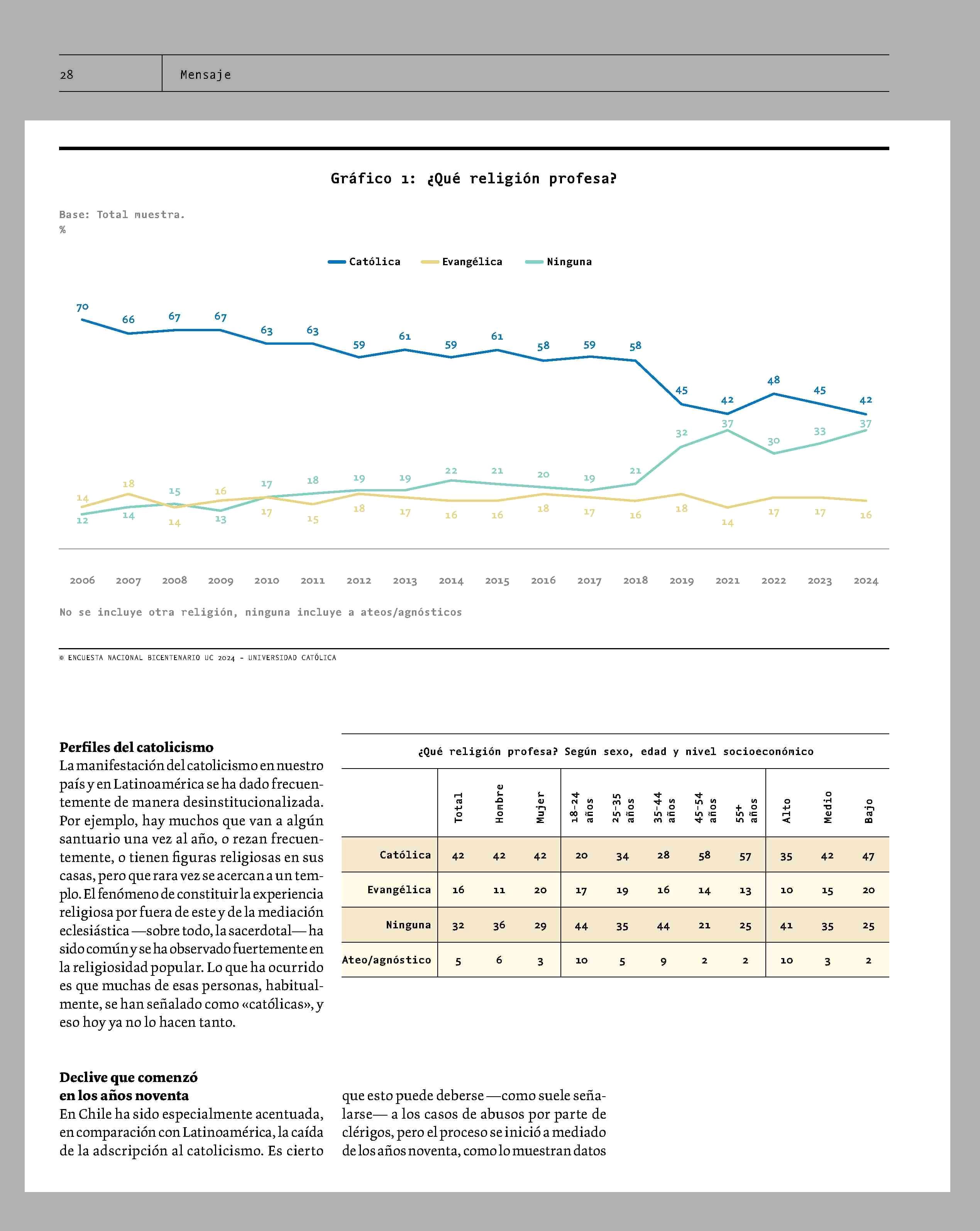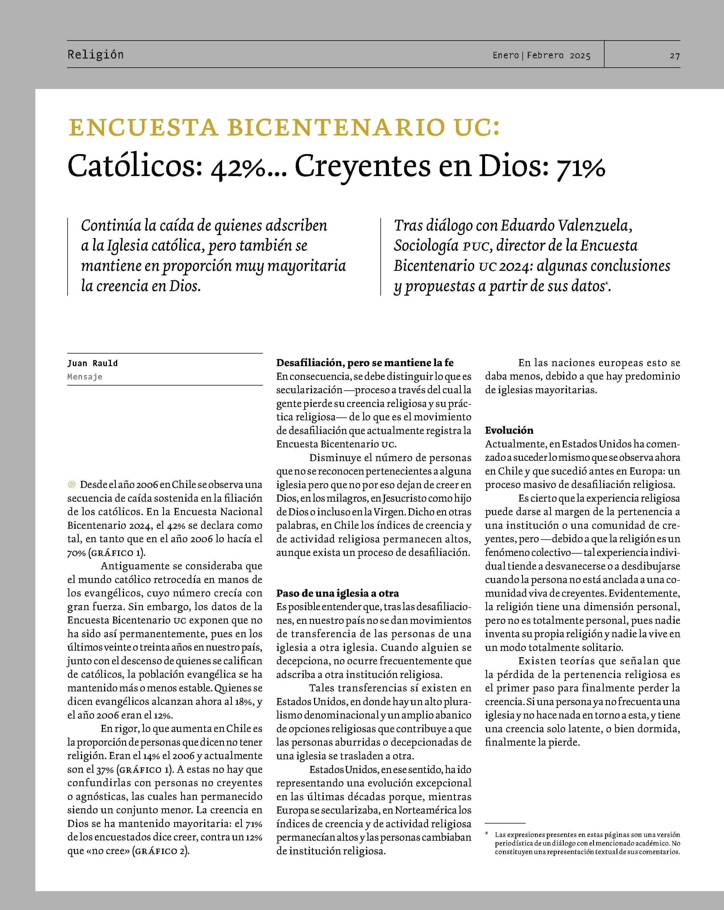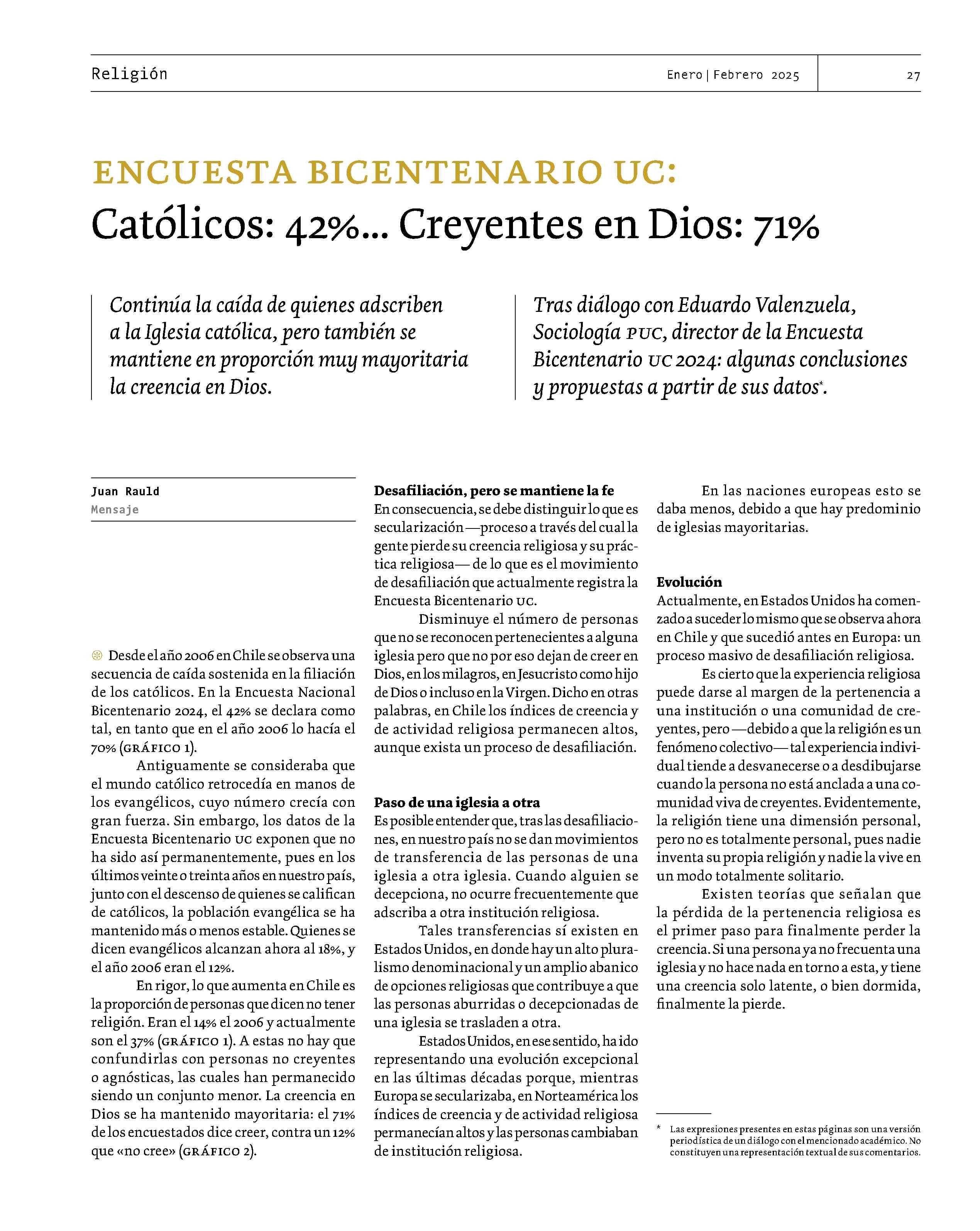 Católicos: 42%... Creyentes en Dios: 71% 23-01-2025 Revista Mensaje |