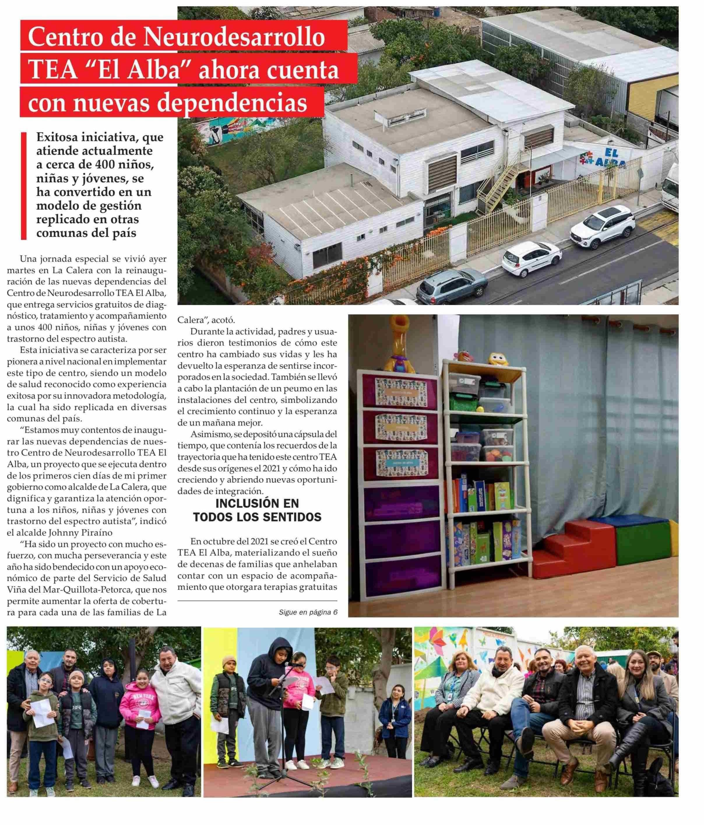 Centro de Neurodesarrollo TEA “El Alba” ahora cuenta con nuevas dependencias 14-05-2025 El Observador Vespertino |