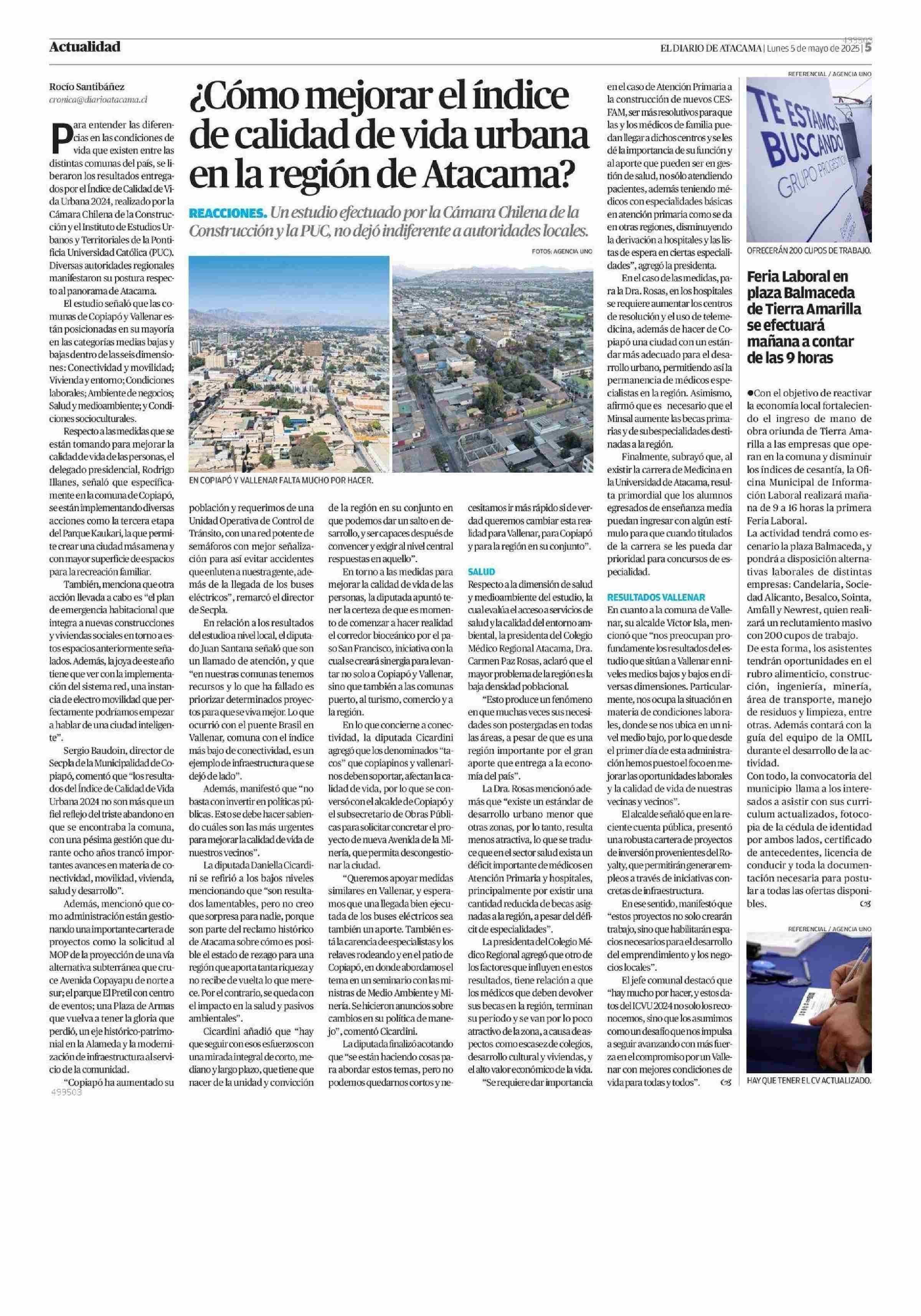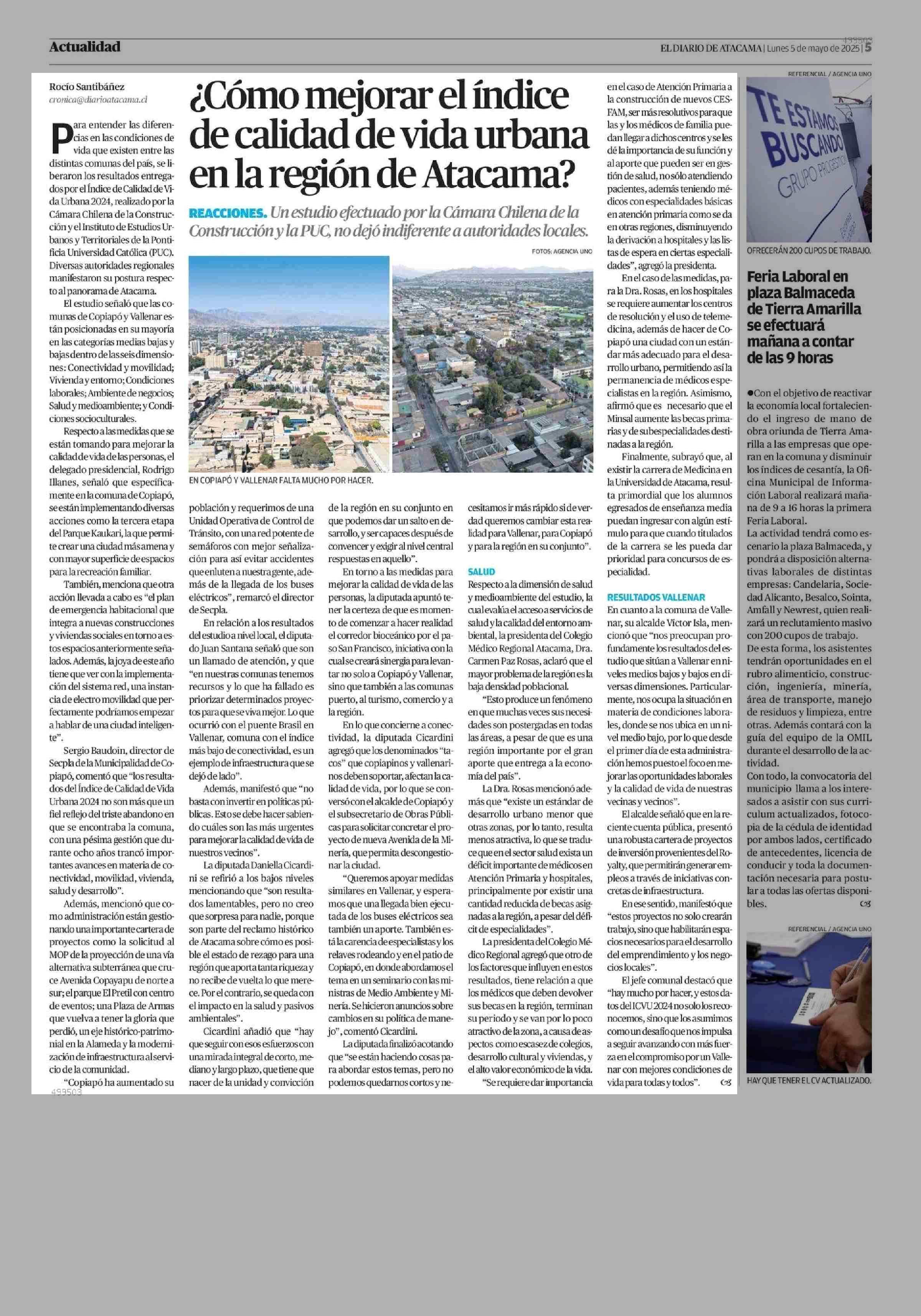 ¿Cómo mejorar el índice de calidad de vida urbana en la región de Atacama? 05-05-2025 El Diario de Atacama |