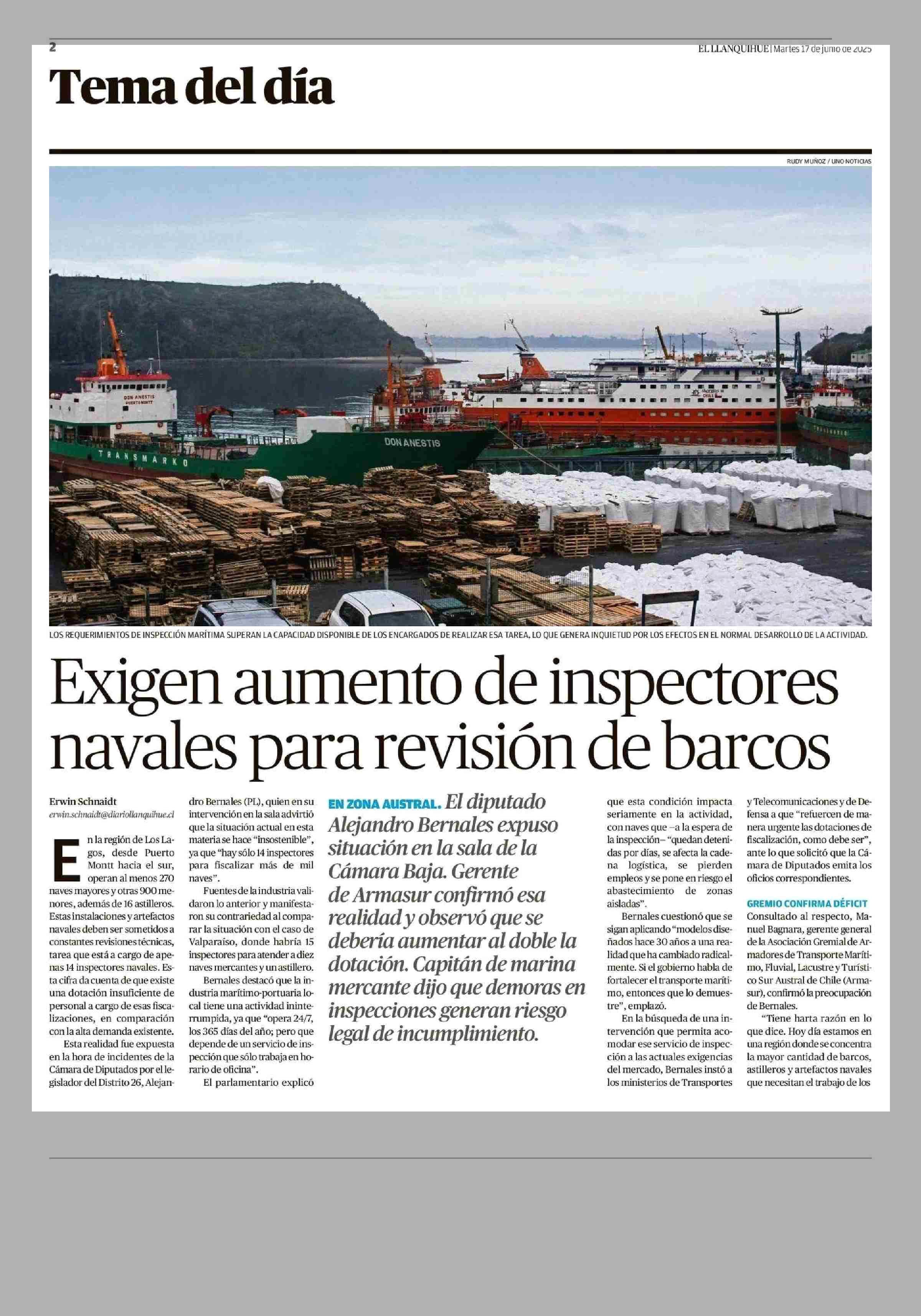 Exigen aumento de inspectores navales para revisión de barcos 17-06-2025 El Llanquihue |