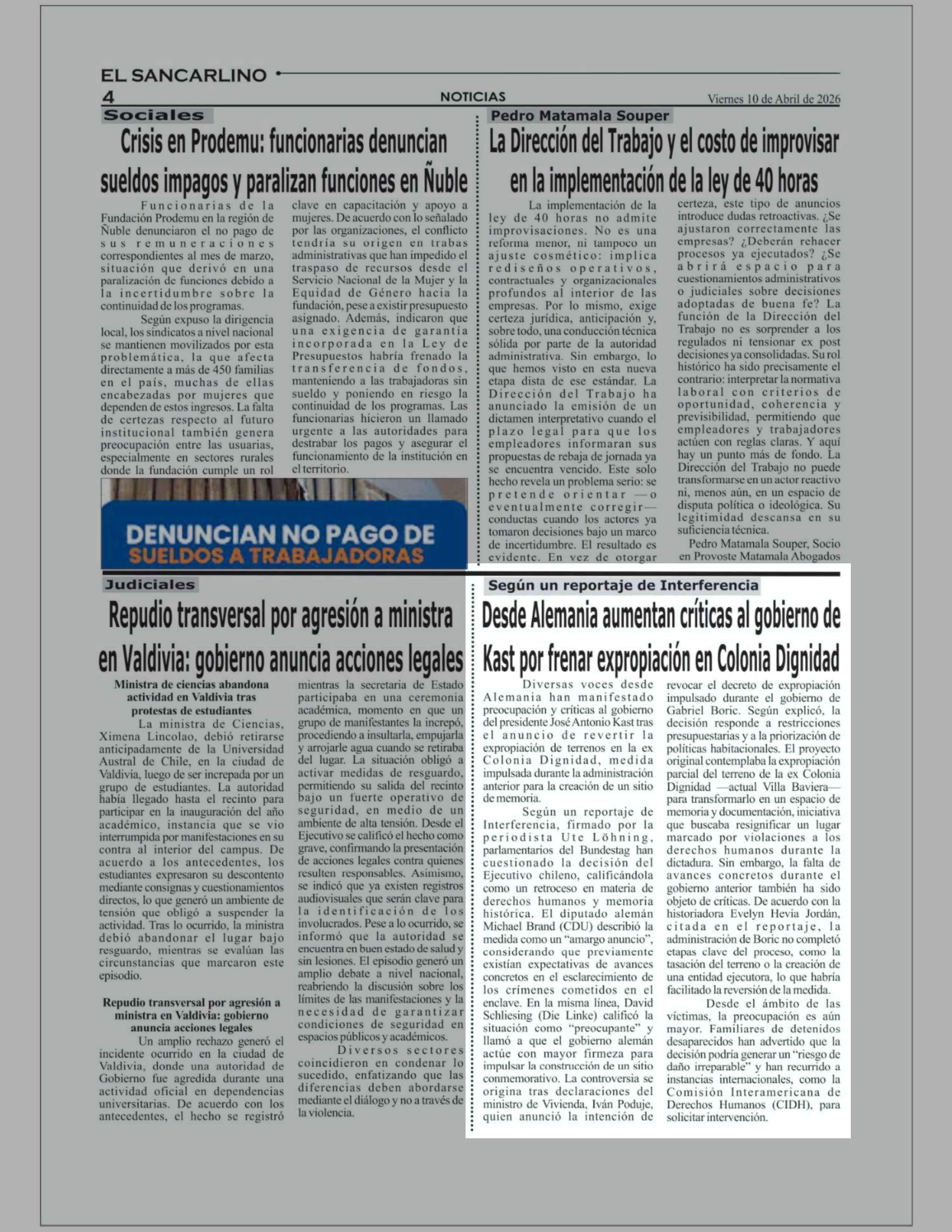 Desde Alemania aumentan críticas al gobierno de Kast por frenar expropiación en Colonia Dignidad 10-04-2026 El Sancarlino |