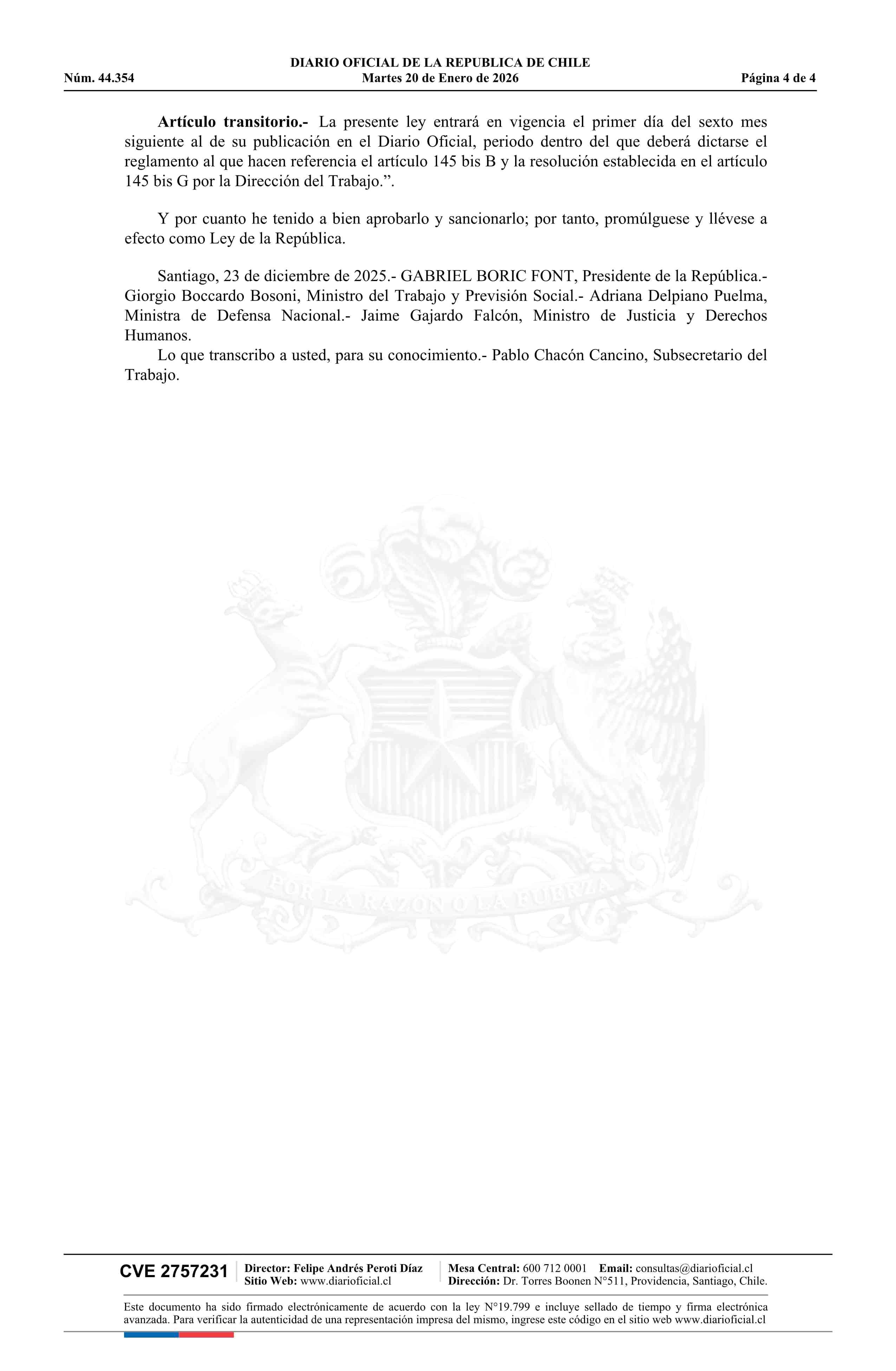 Ley número 21.789.- Crea el contrato de buceo y actividades conexas 20-01-2026 DIARIO OFICIAL CHILE - BOLETÍN OFICIAL DE MINERÍA |