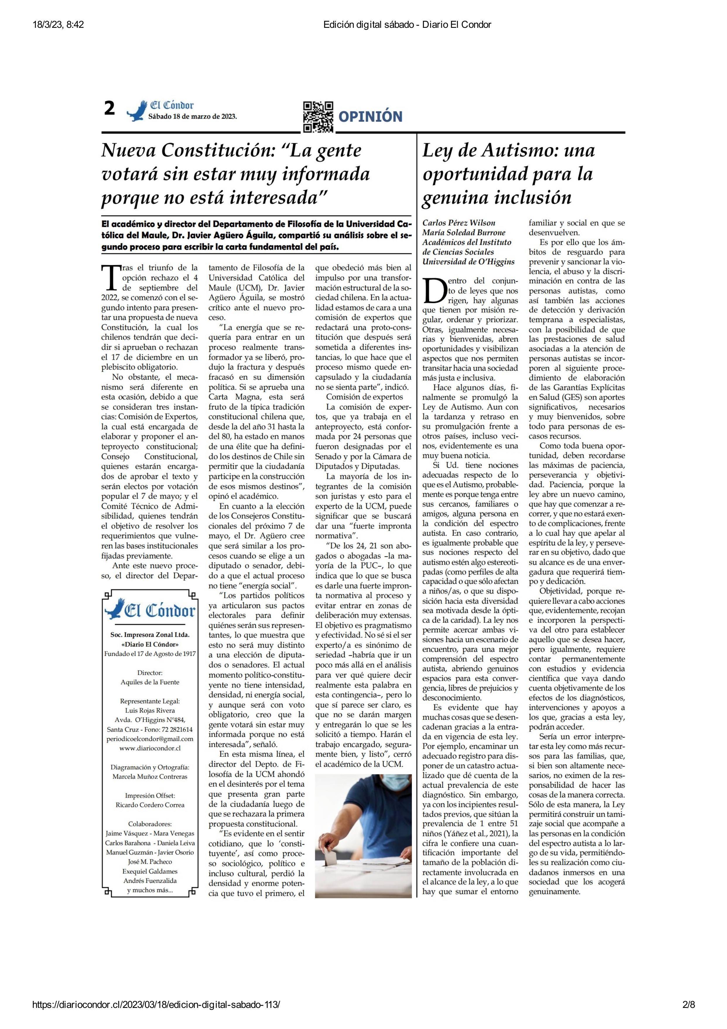 Nueva Constitución: “La gente votará sin estar muy informada porque no está interesada” 18-03-2023 Diario Condor |