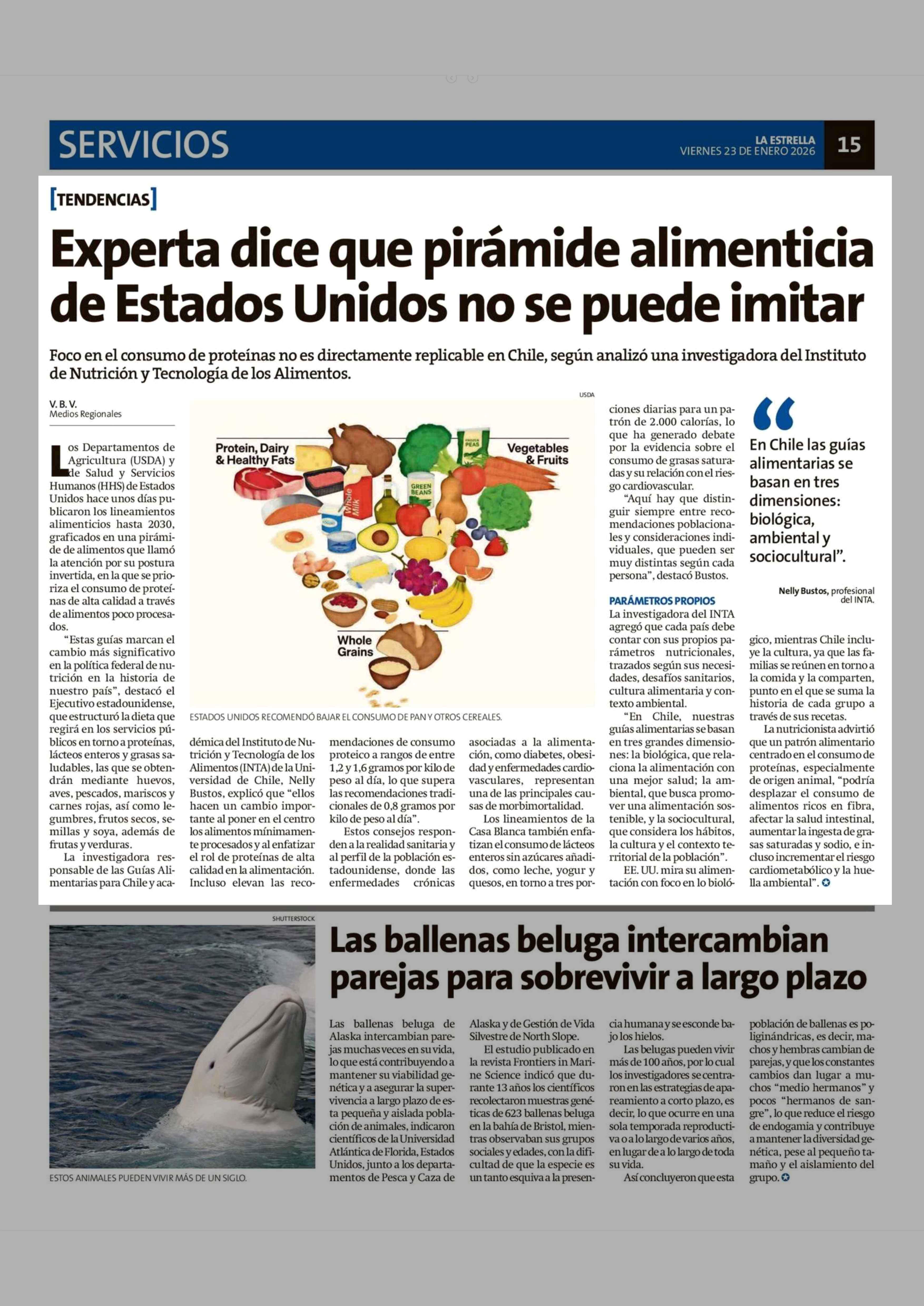 Experta dice que pirámide alimenticia de Estados Unidos no se puede imitar 23-01-2026 La Estrella de Chiloé |