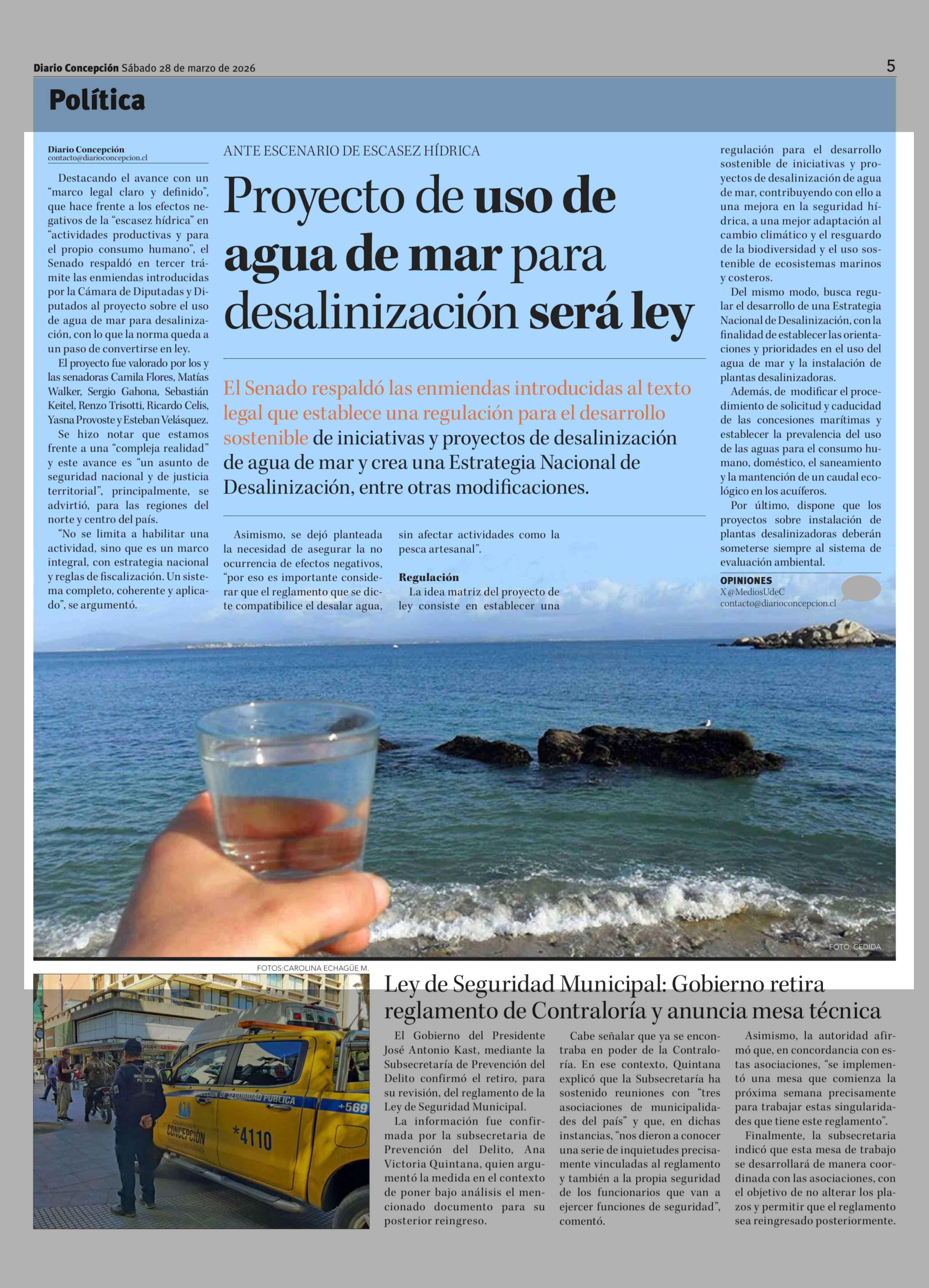 Proyecto de uso de agua de mar para desalinización será ley 28-03-2026 Diario Concepción |