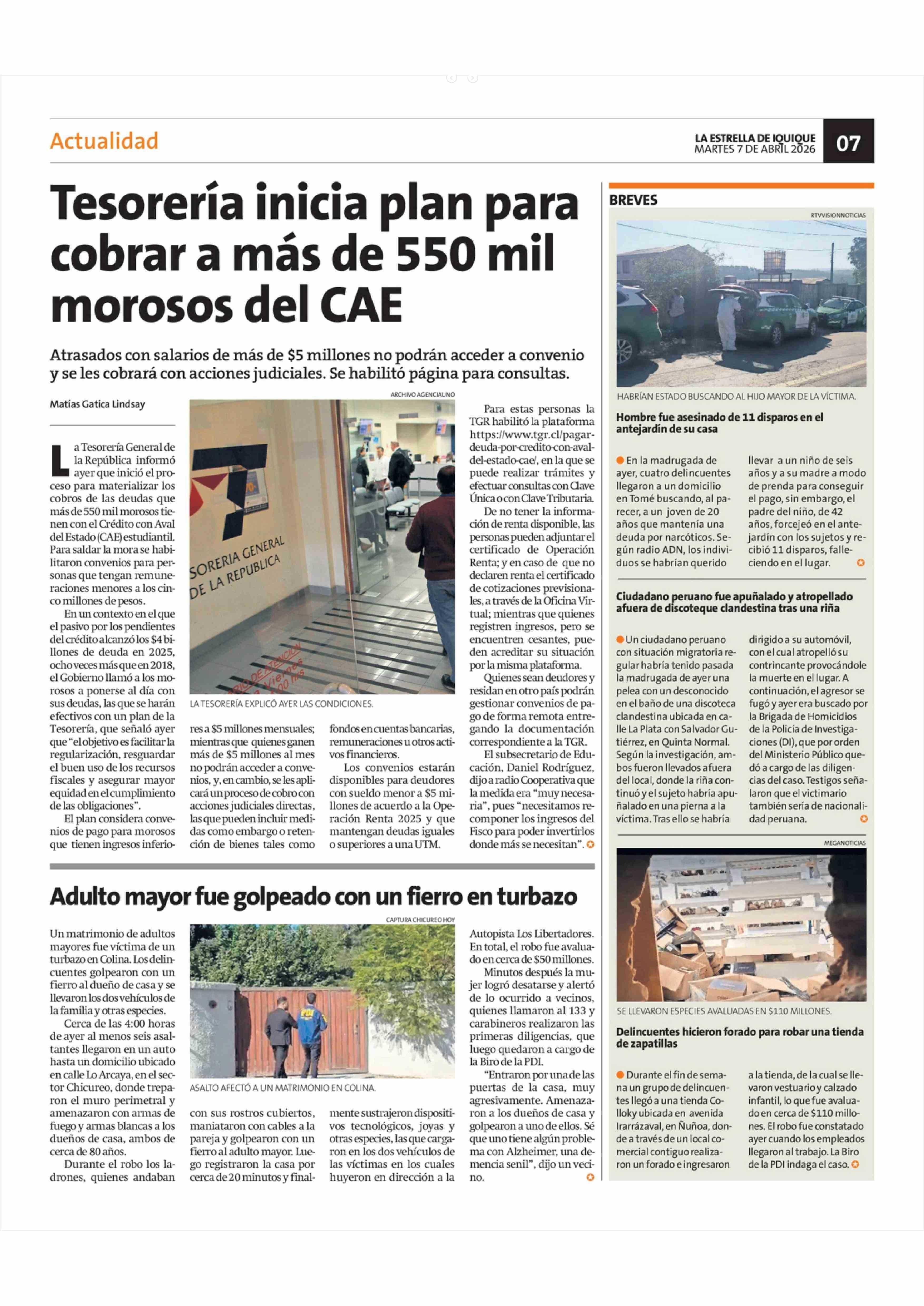 Fecha: 07-04-2026 Sector: Noticia general Región: Región de Tarapacá