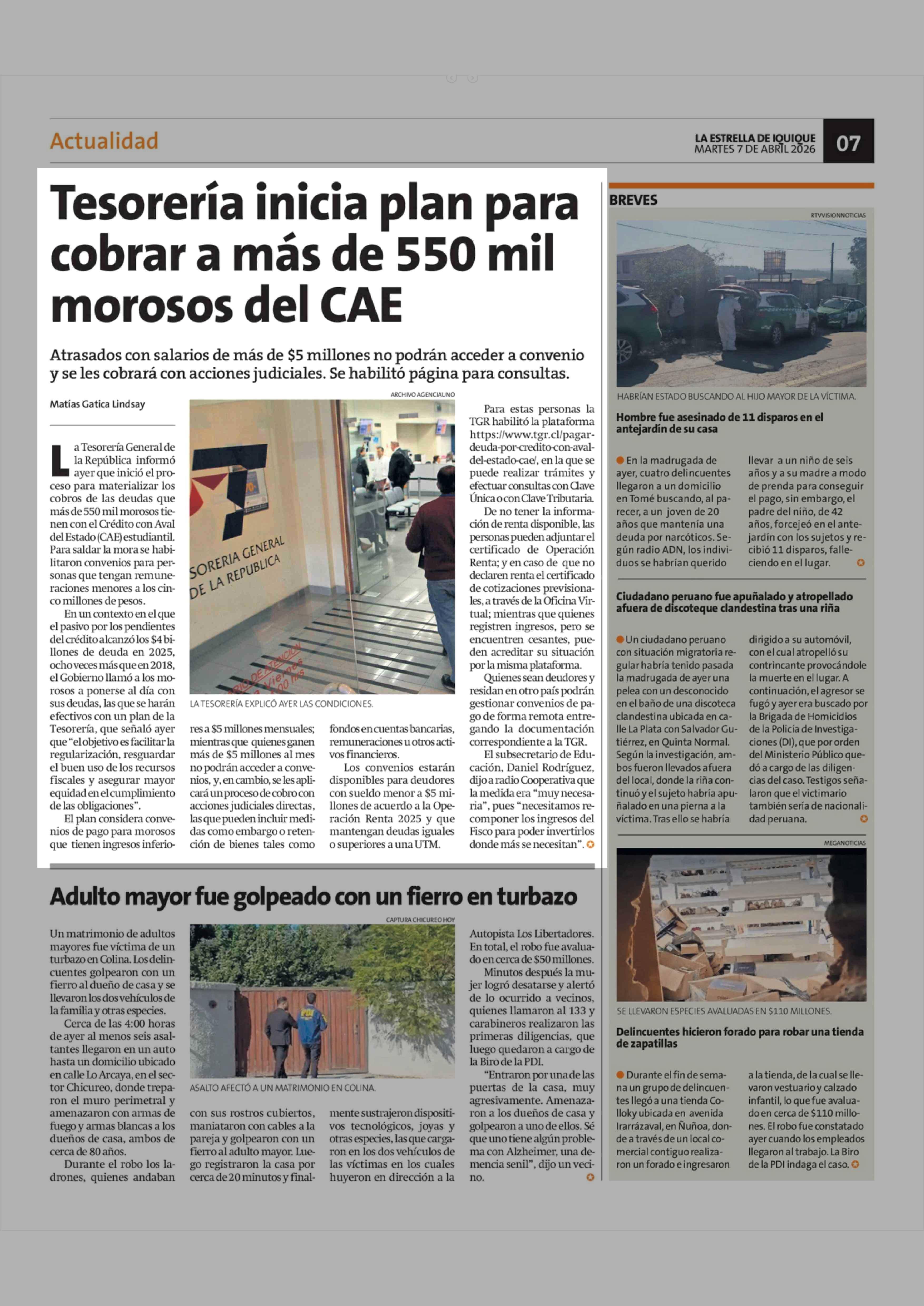 Fuente: La Estrella de Iquique (La Estrella de Iquique) Página(s): 7