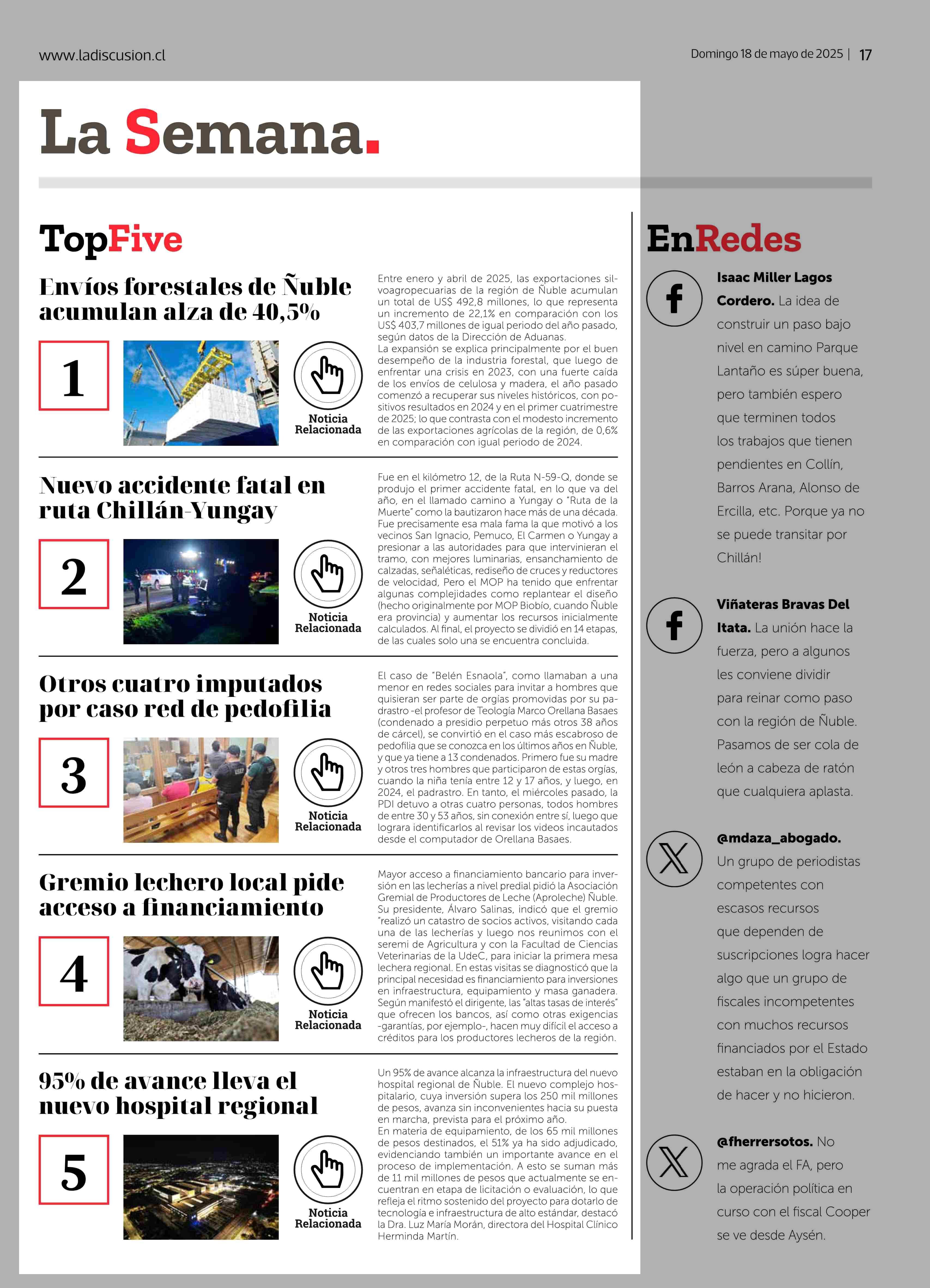 Fecha: 18-05-2025 Sector: Noticia general Región: Región del Ñuble