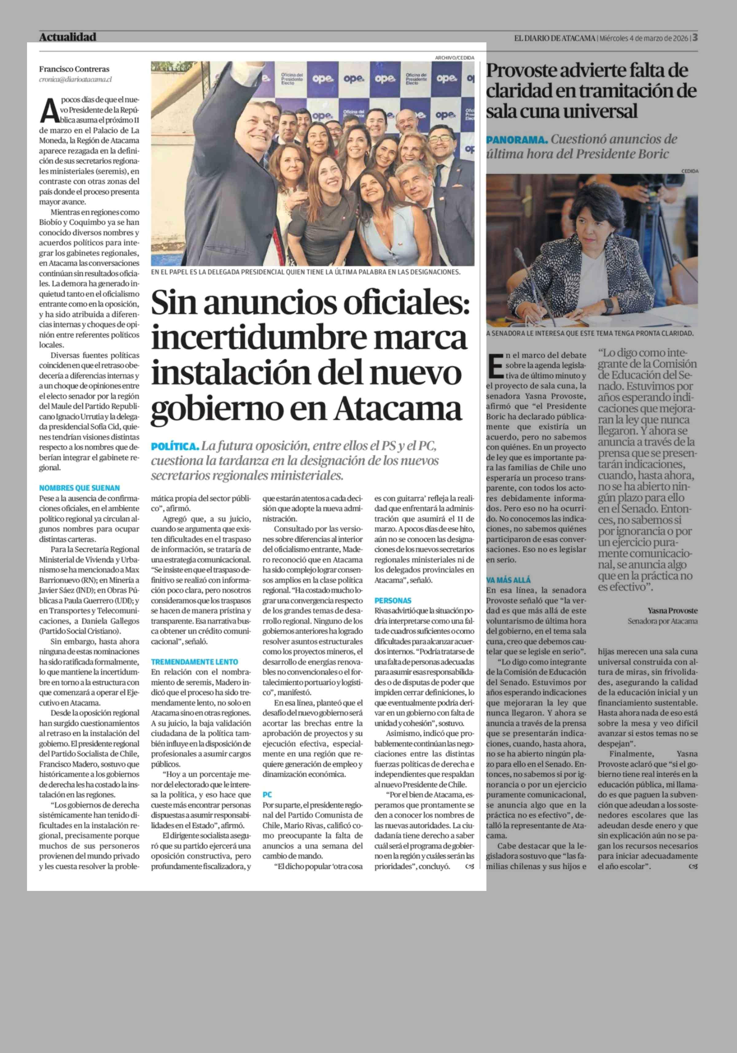 Título: Sin anuncios oficiales: incertidumbre marca instalación del nuevo gobierno en Atacama
