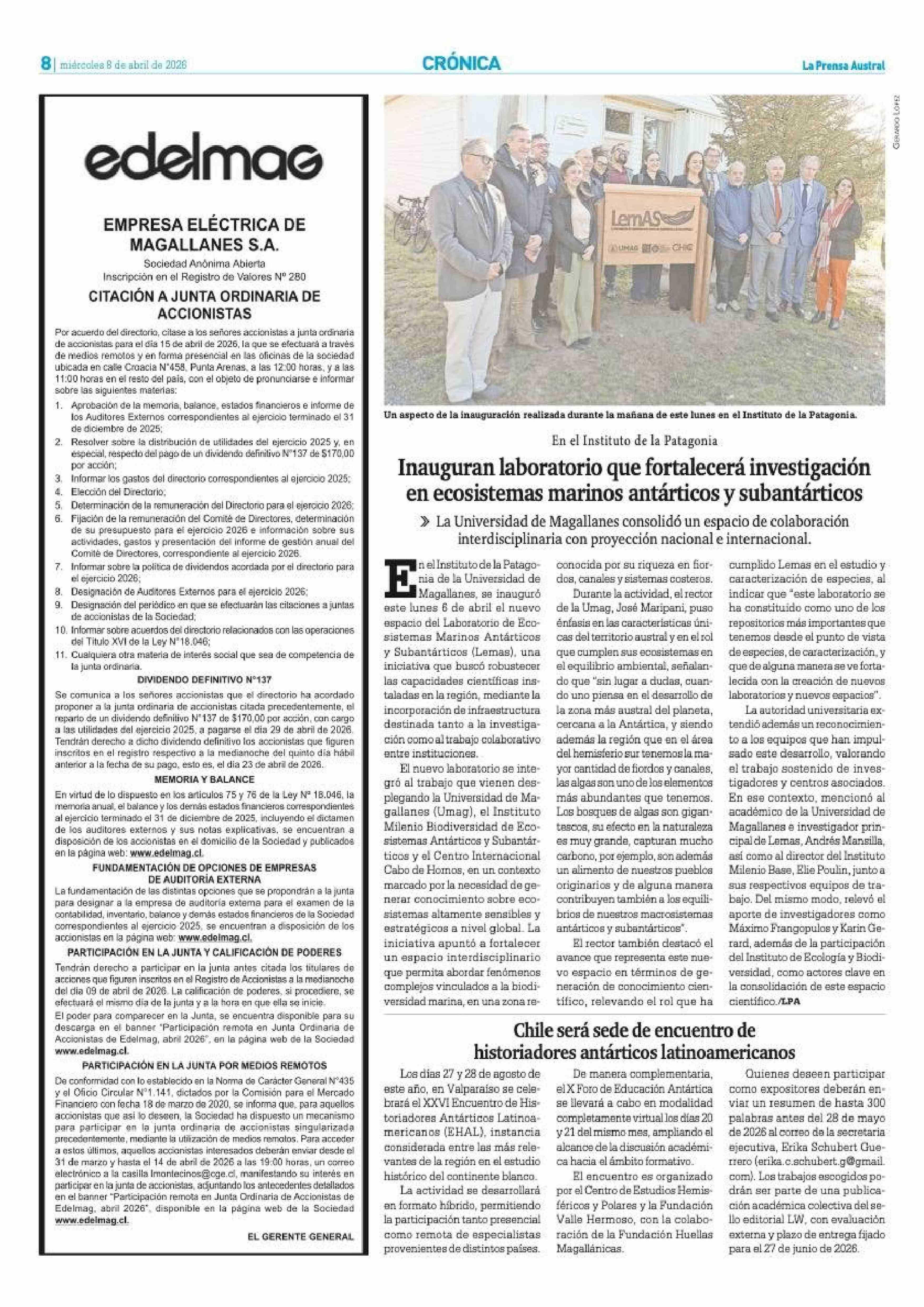 | Fecha: | 08-04-2026 | Sector: | Noticia general | Región: | Región de Magallanes y de la Antártica Chilena |