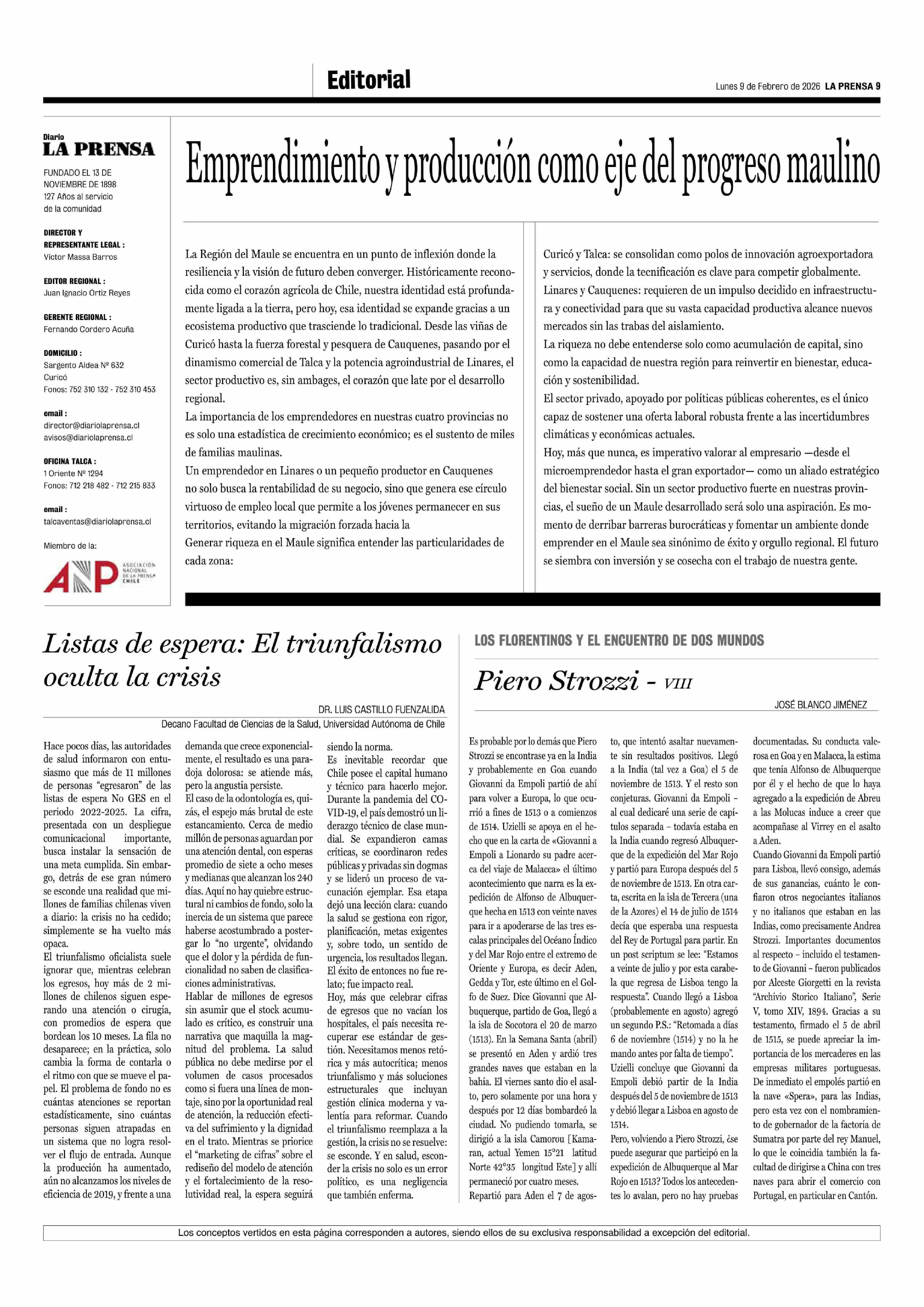 Cartas: Listas de espera: El triunfalismo oculta la crisis 09-02-2026 La Prensa de Curicó |