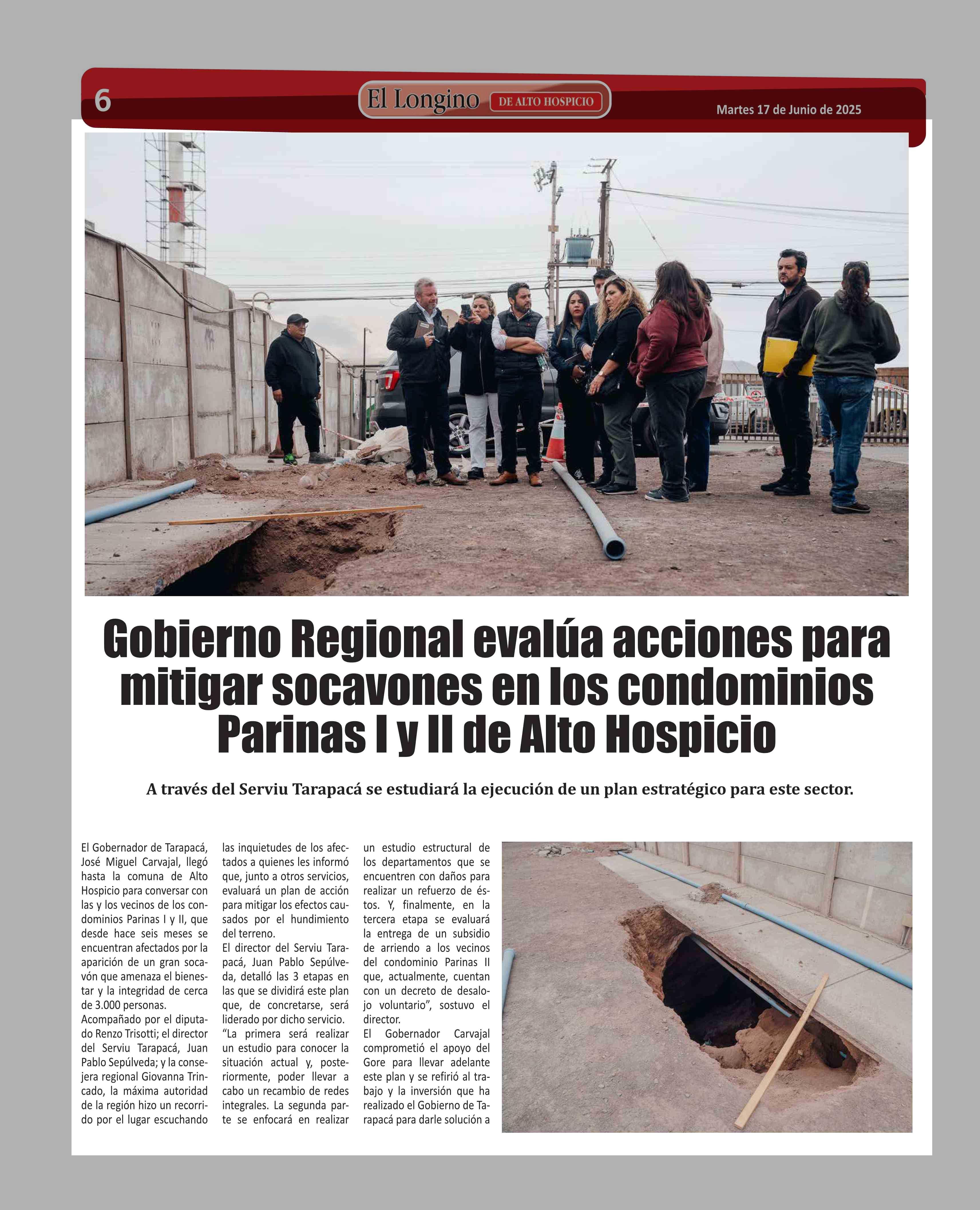 Gobierno Regional evalúa acciones para mitigar socavones en los condominios Parinas I y II de Alto Hospicio 17-06-2025 El Longino |