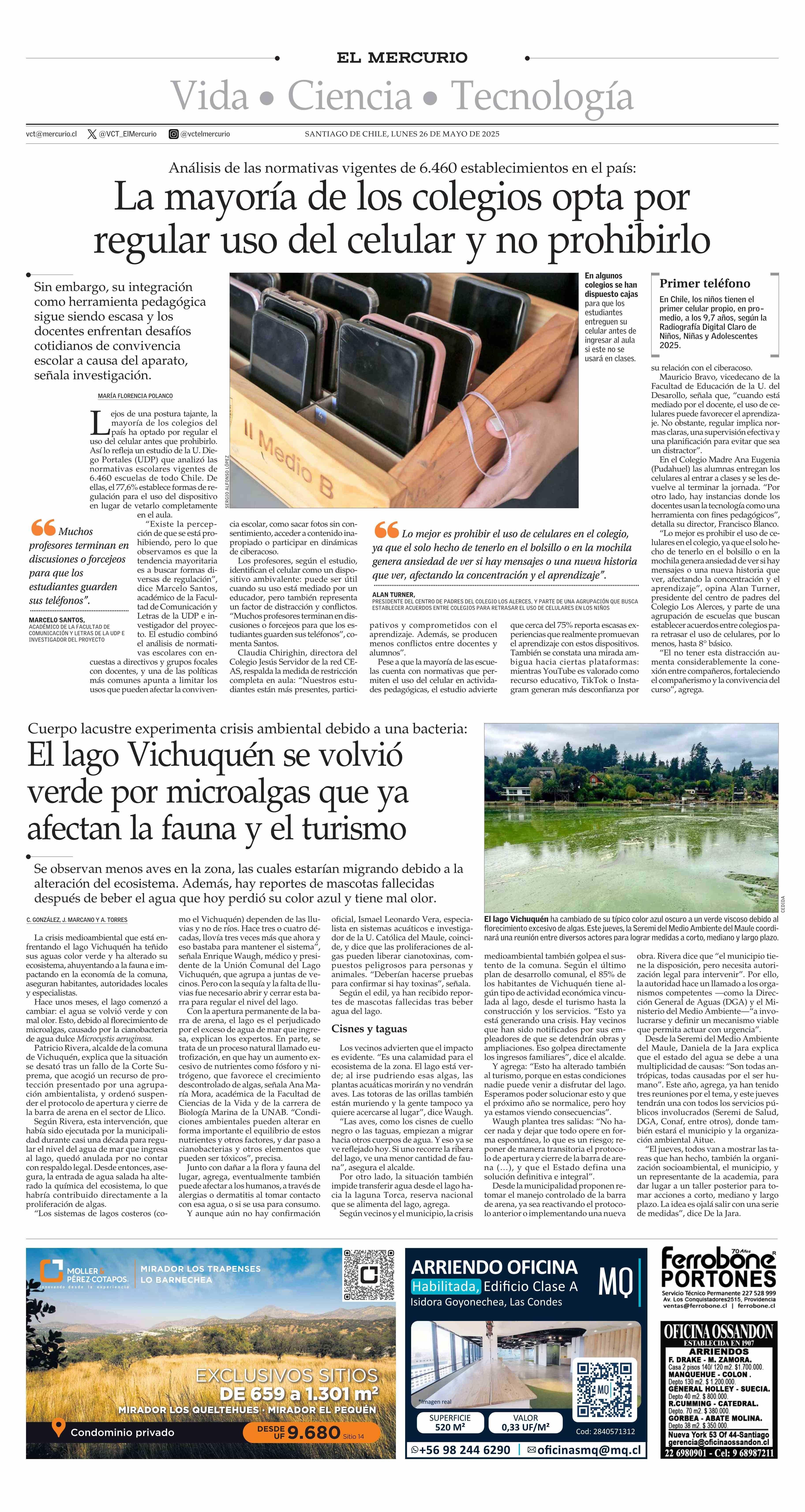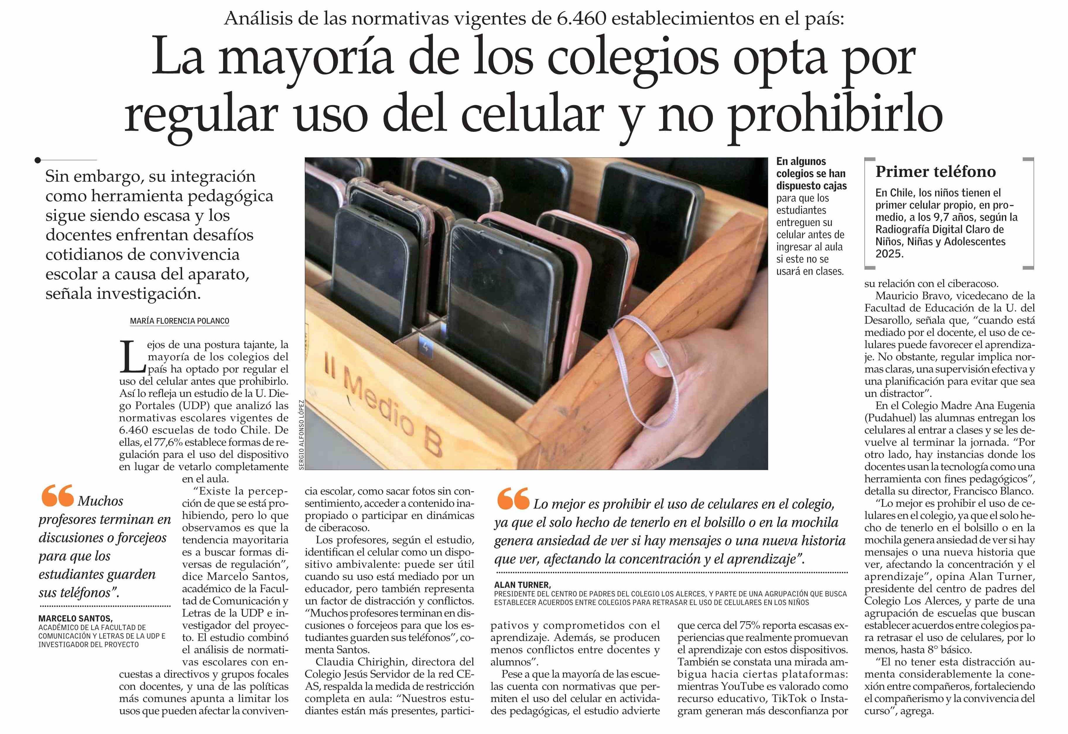 La mayoría de los colegios opta por regular uso del celular y no prohibirlo 26-05-2025 El Mercurio |