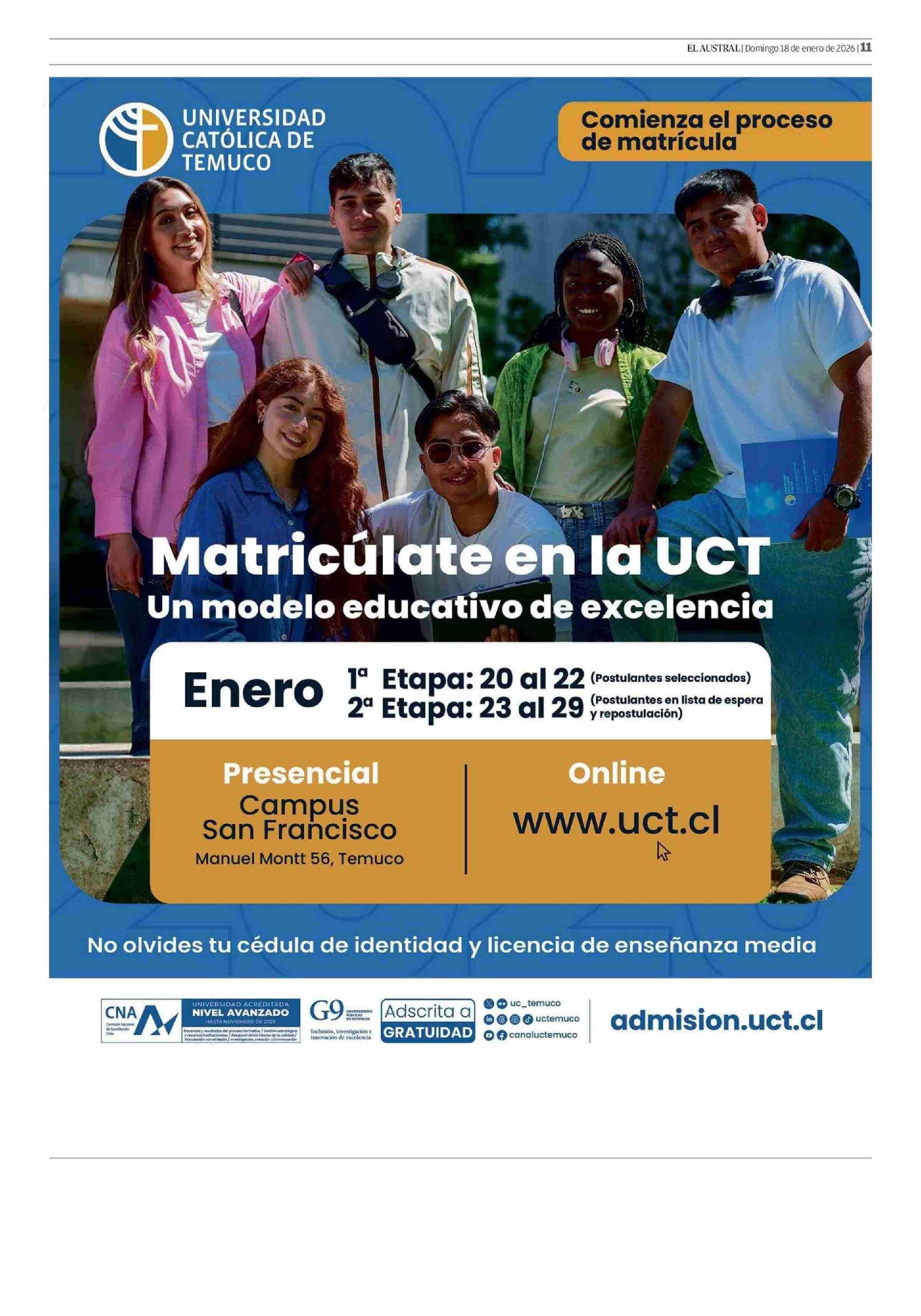 Fecha: 18-01-2026 Sector: Aviso Universidad Región: Región de la Araucanía