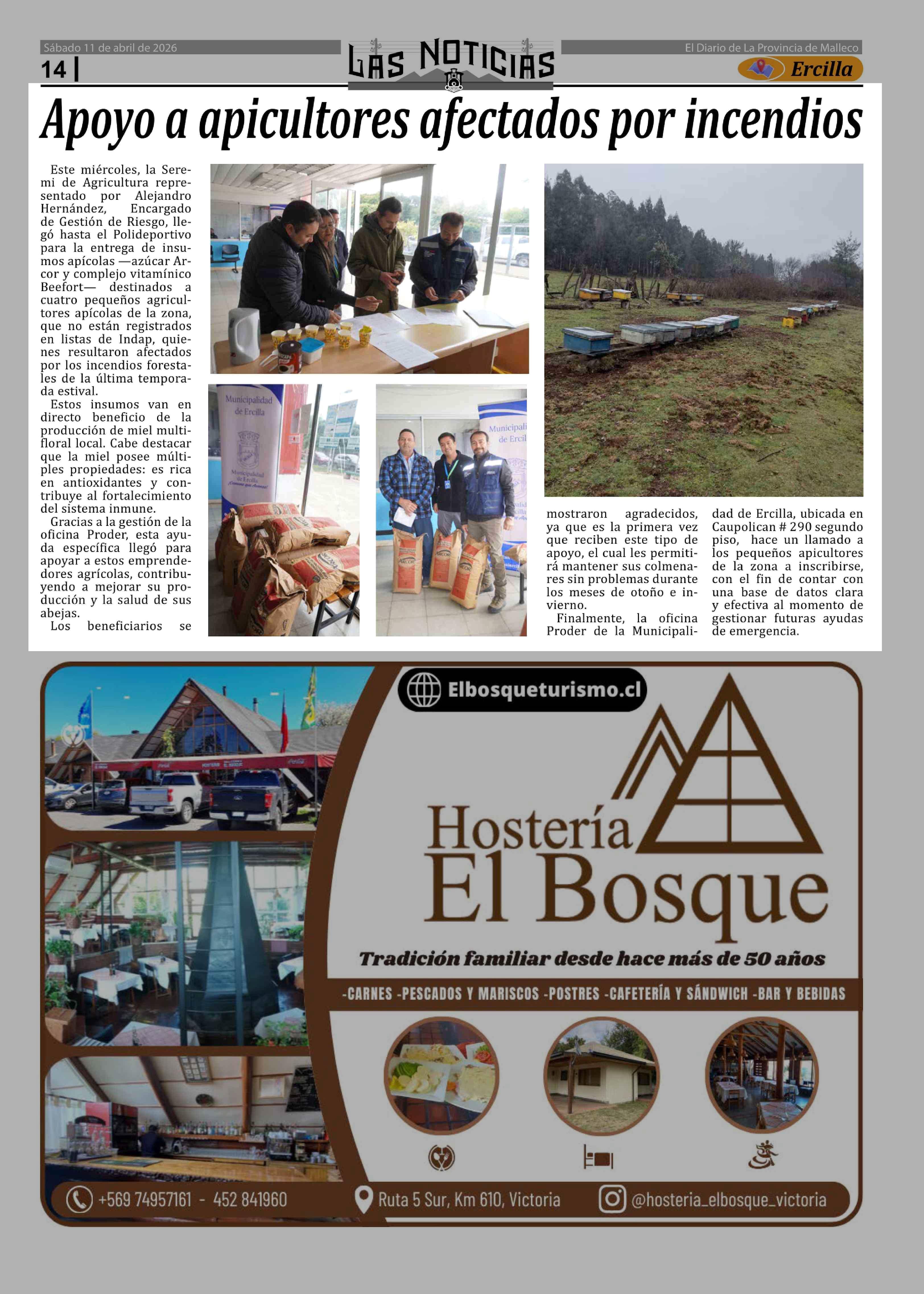 Apoyo a apicultores afectados por incendios 11-04-2026 Las Noticias |