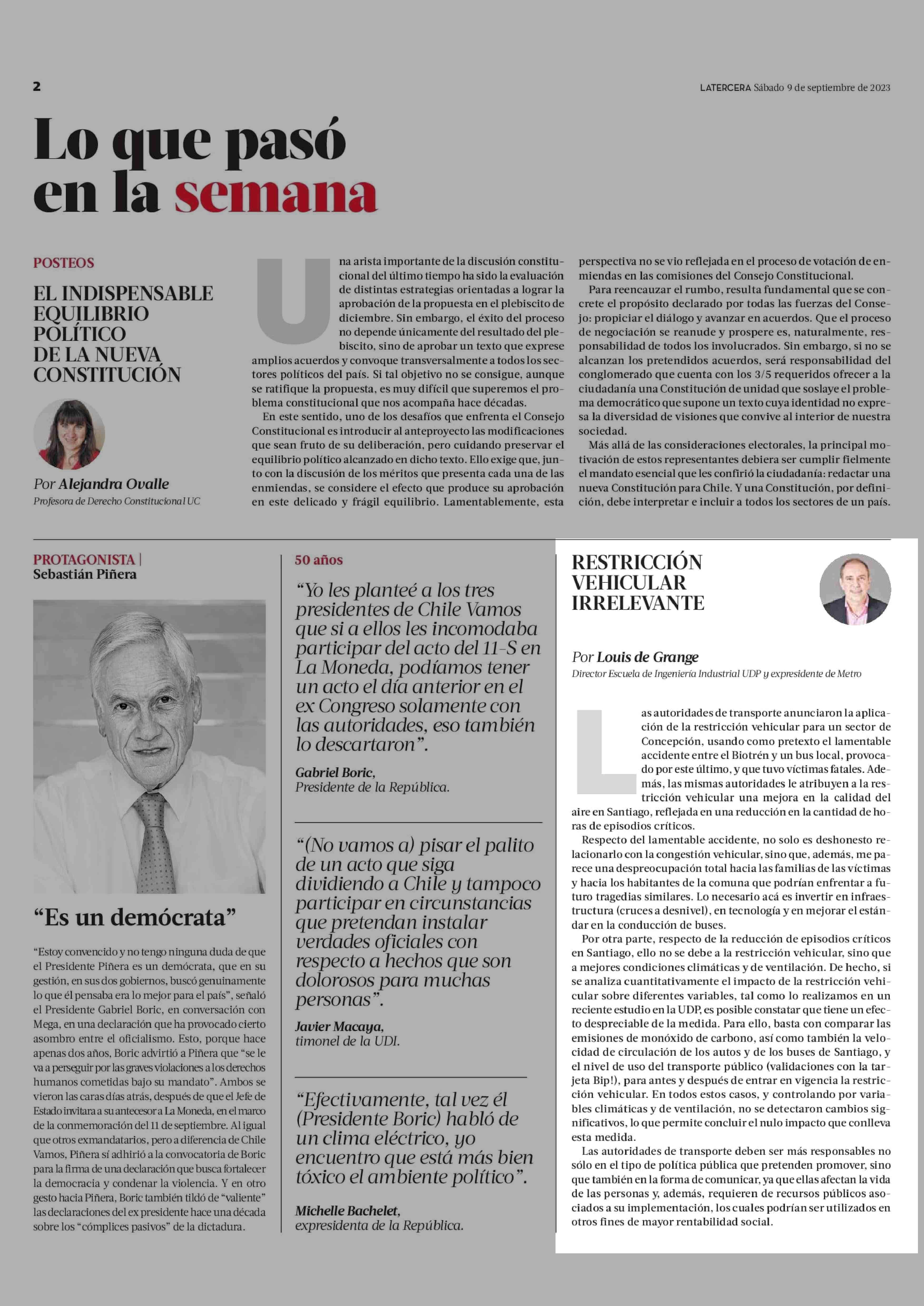 RESTRICCIÓN VEHICULAR IRRELEVANTE 09-09-2023 La Tercera |