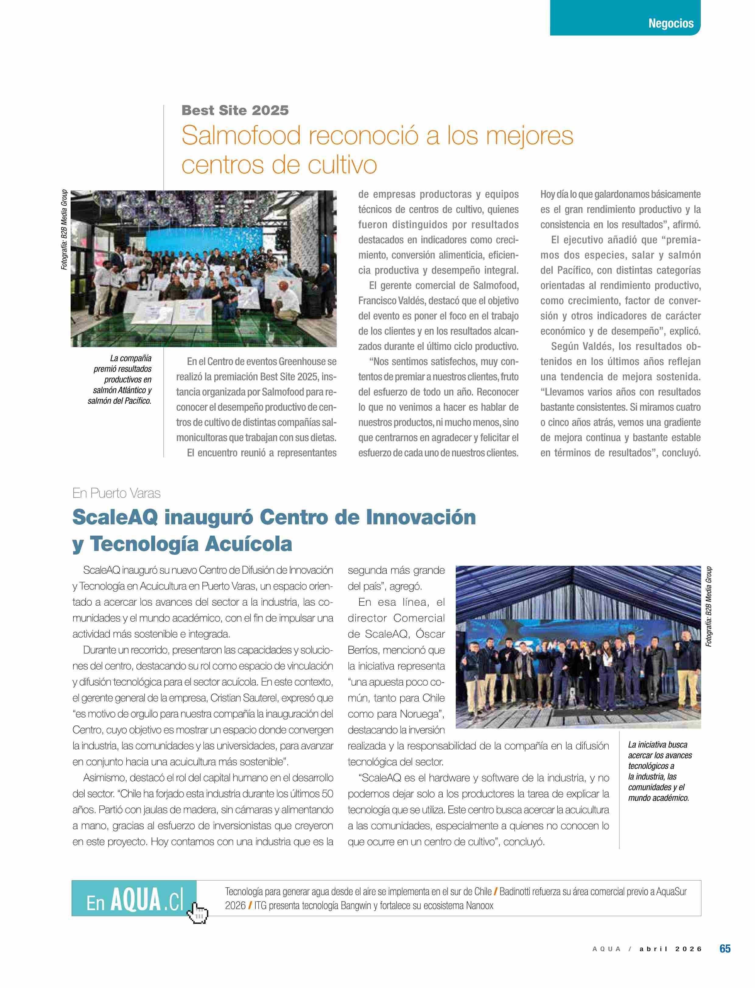 ScaleAQ inauguró Centro de Innovación y Tecnología Acuícola 21-04-2026 Revista Aqua |