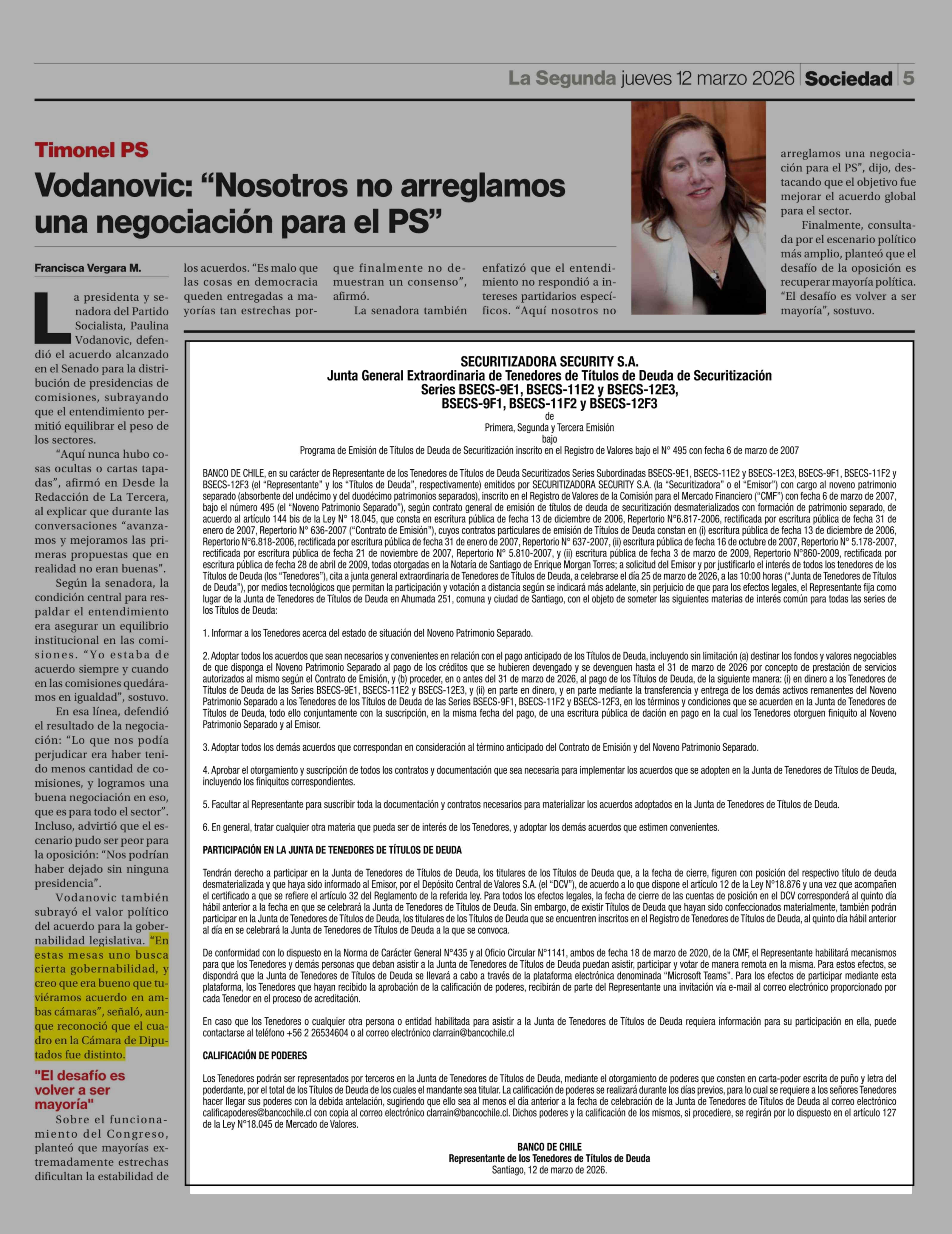 SECURITIZADORA SECURITY S.A. 12-03-2026 La Segunda |