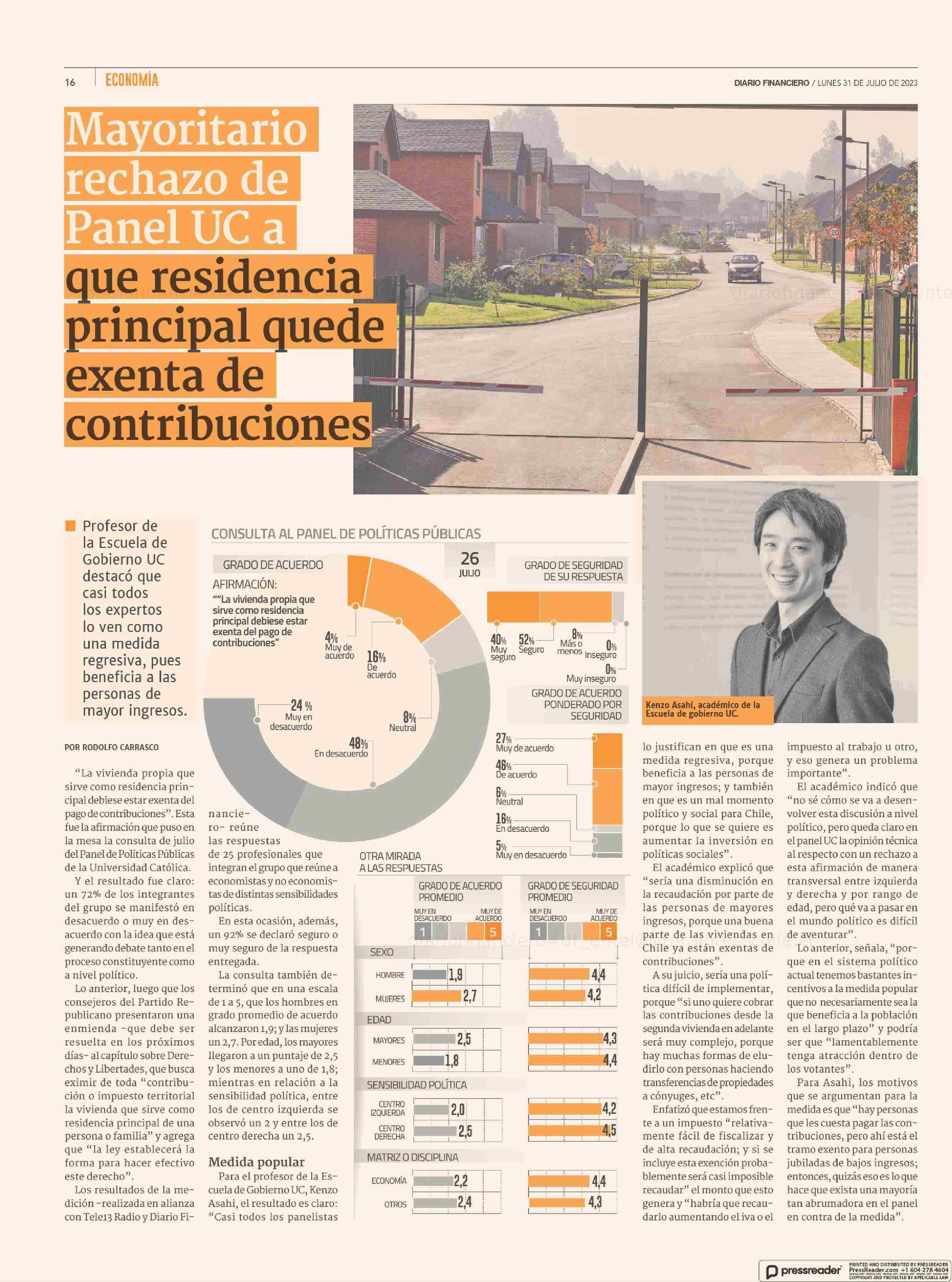 Mayoritario rechazo de Panel UC a que residencia principal quede exenta de contribuciones 31-07-2023 Diario Financiero |