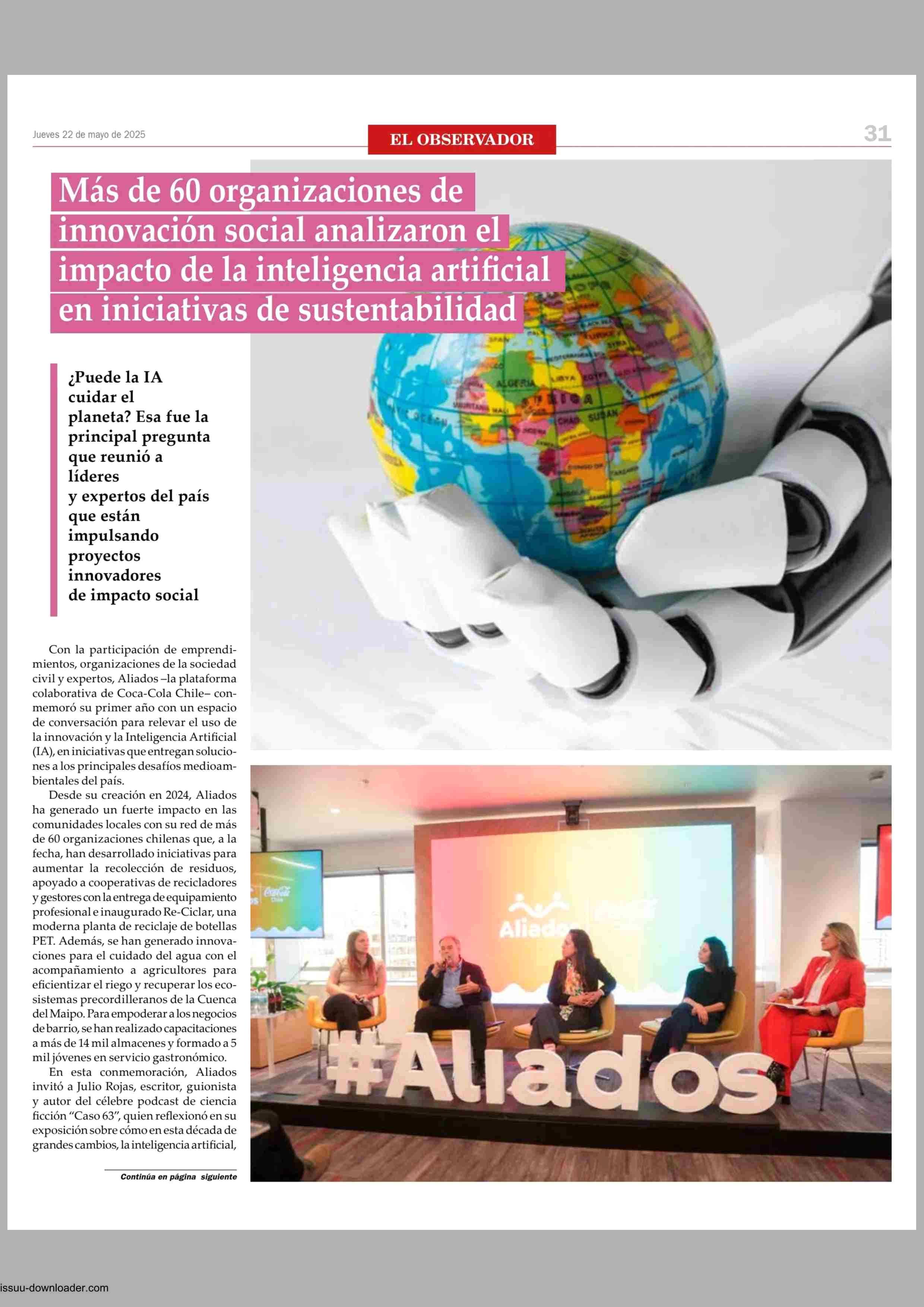 Más de 60 organizaciones de innovación social analizaron el impacto de la inteligencia artificial en iniciativas de sustentabilidad 22-05-2025 El Observador Vespertino |