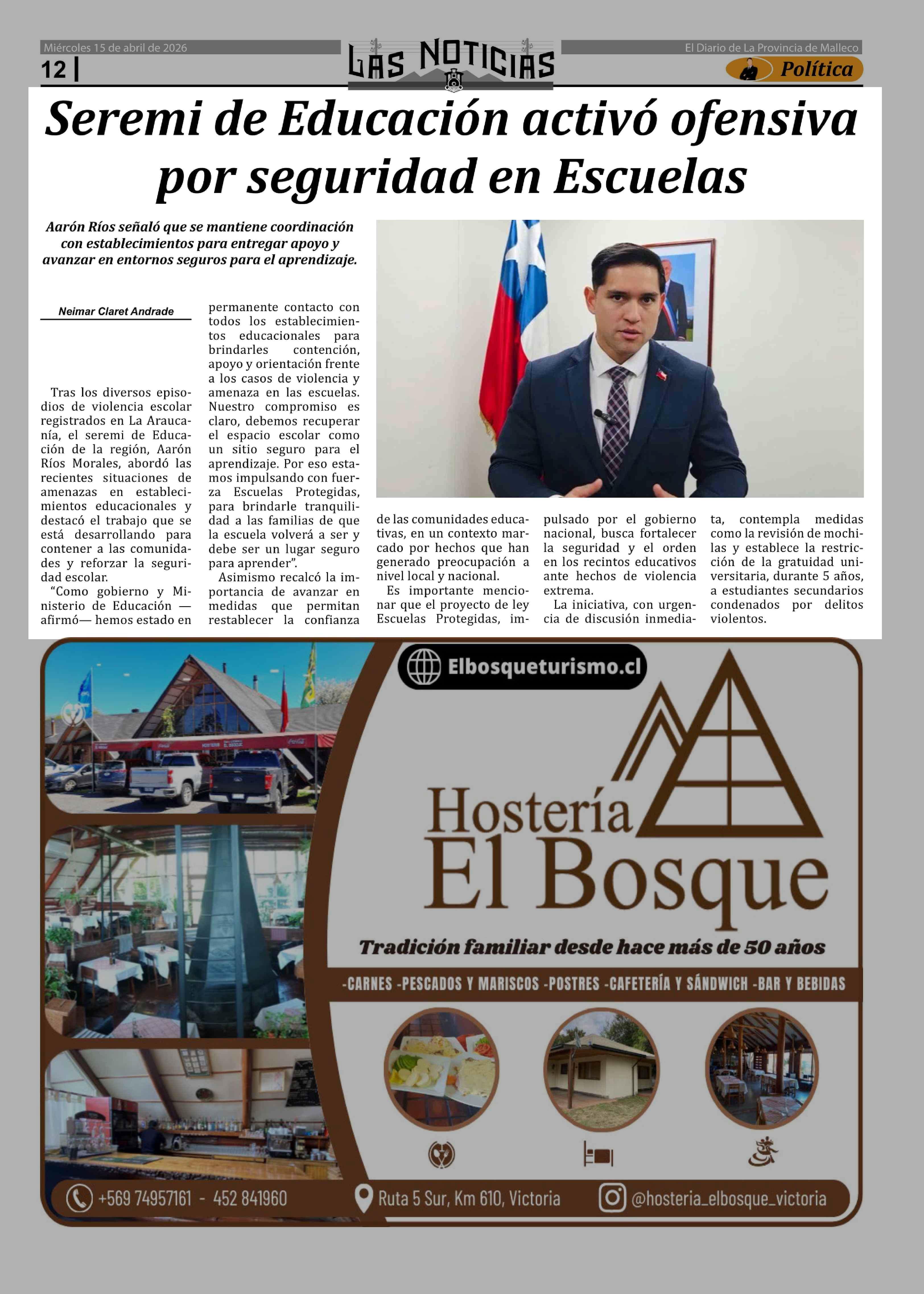 Fecha: 15-04-2026 Sector: Noticia general Región: Región de la Araucanía