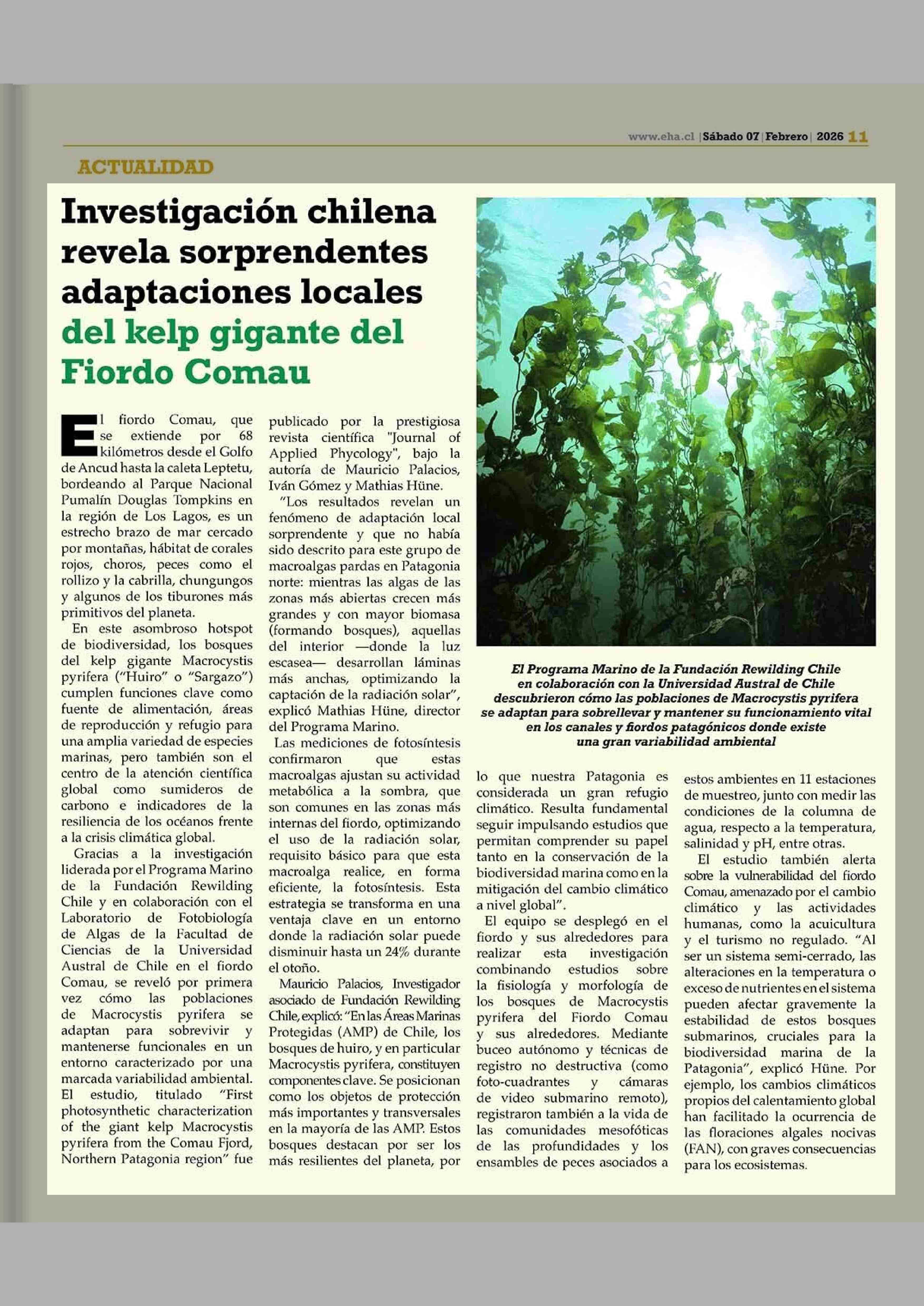 Título: Investigación chilena revela sorprendentes adaptaciones locales del kelp gigante del Fiordo Comau
