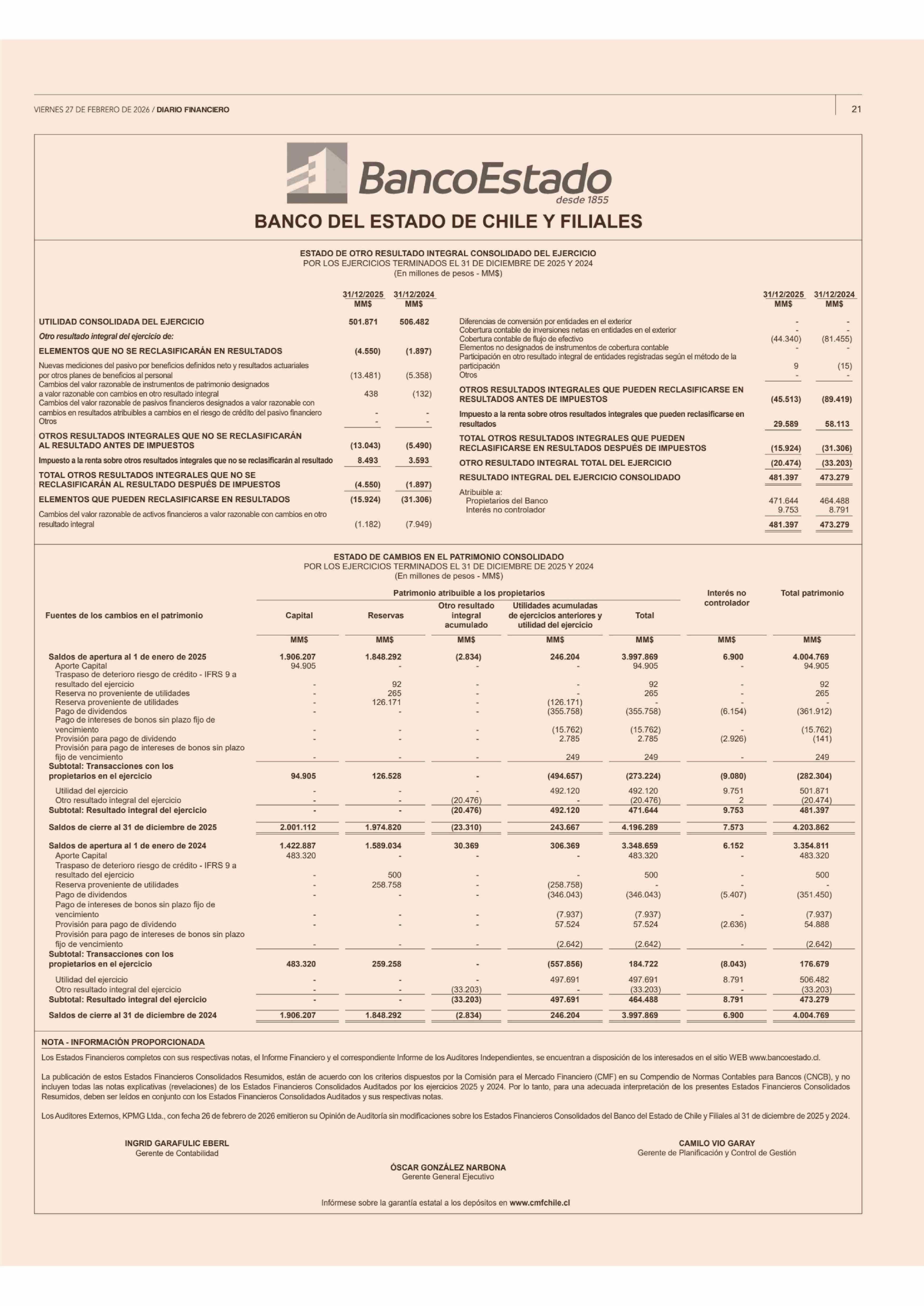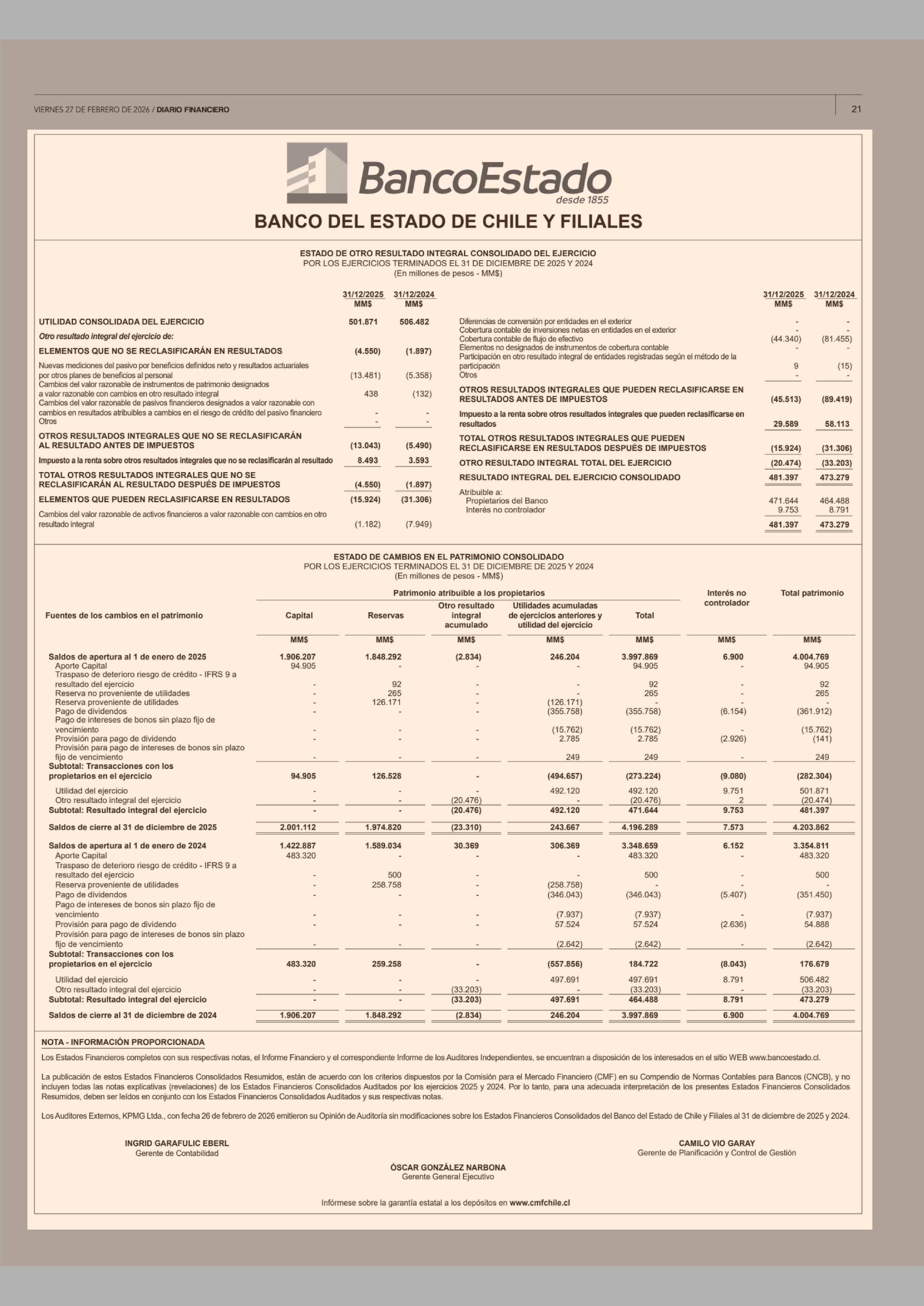 Fecha: 27-02-2026 Sector: Extractos Región: Región Metropolitana de Santiago