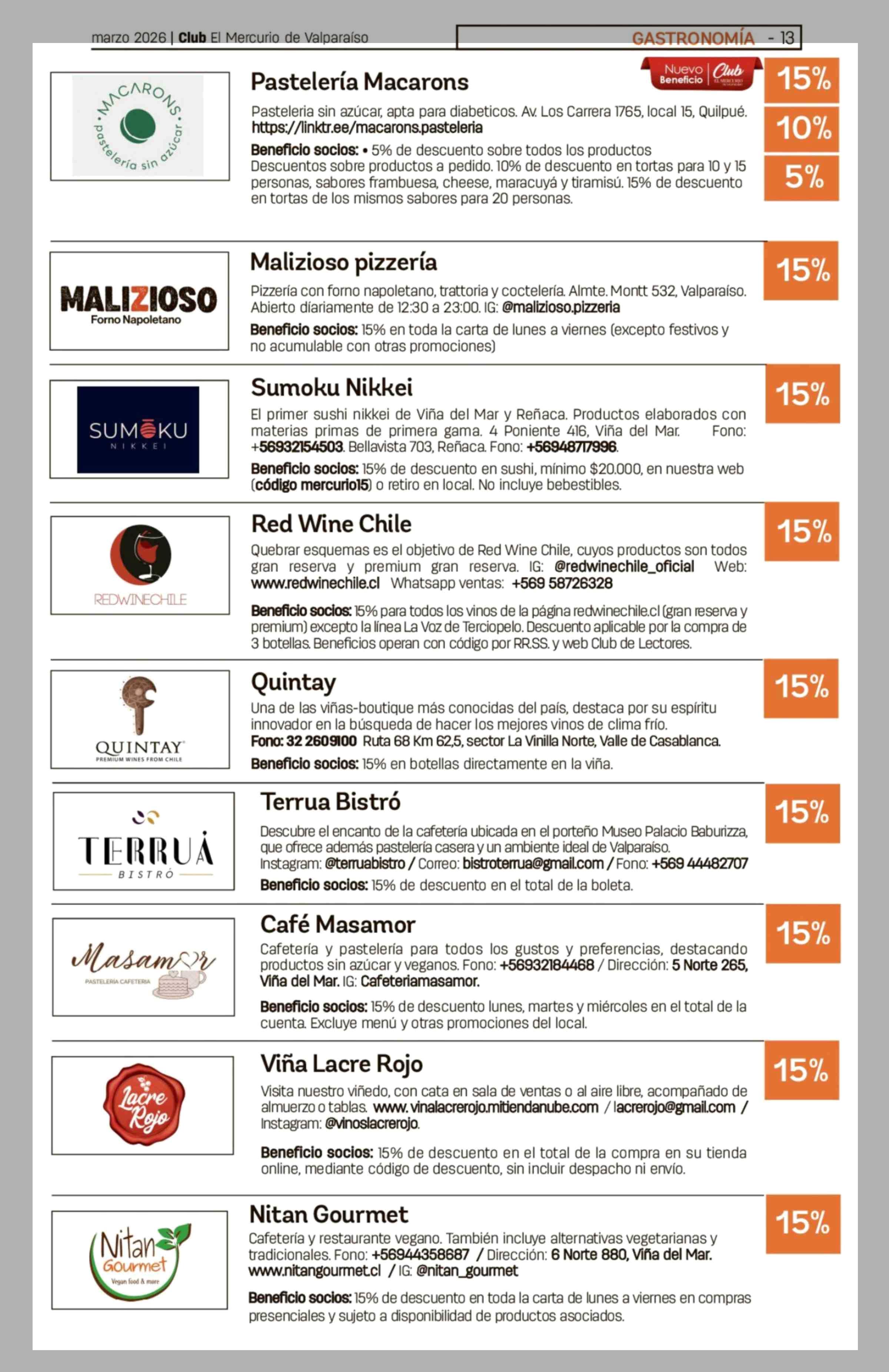 Gastronomía y delivery 01-03-2026 El Mercurio de Valparaíso |