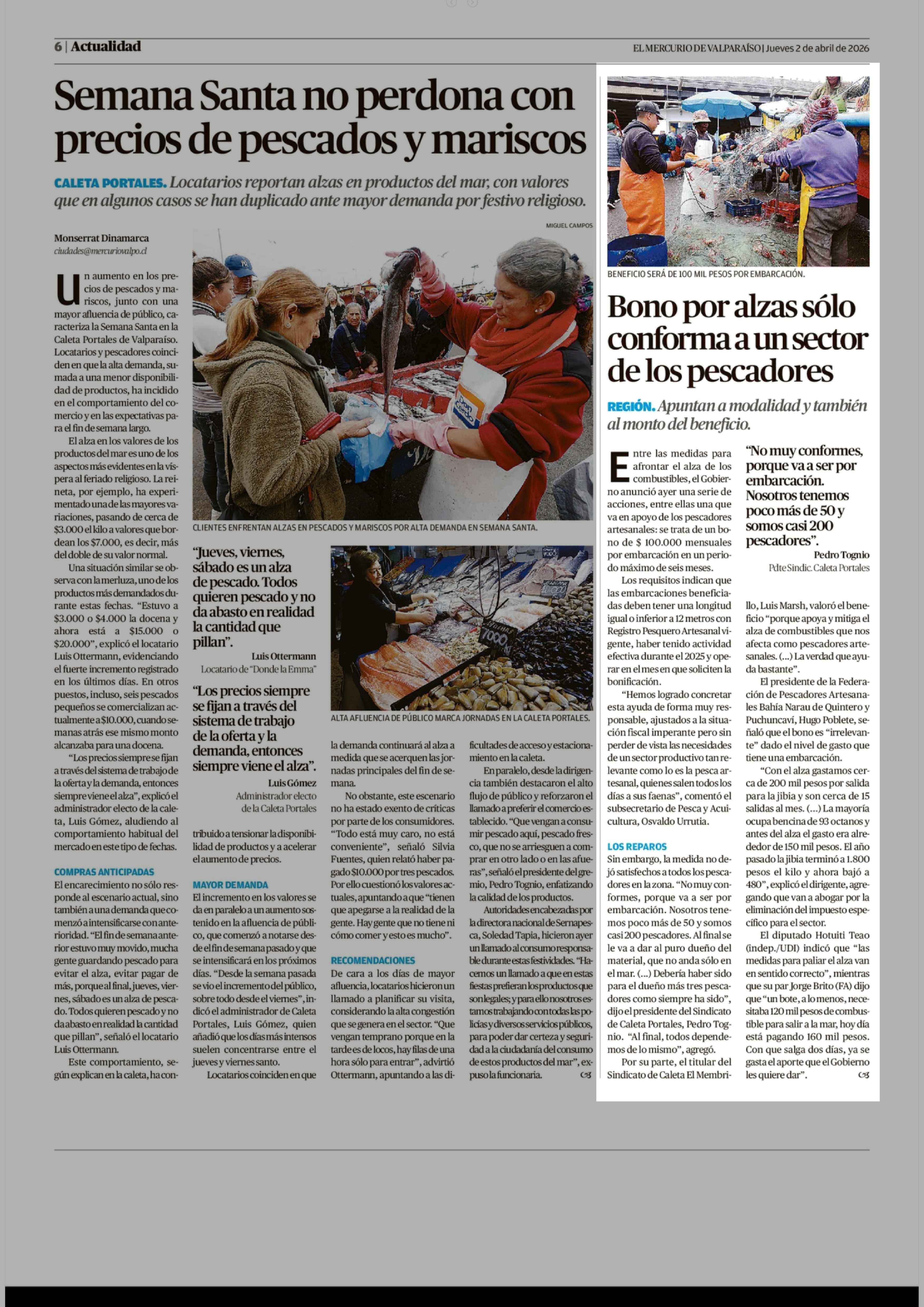 Título: Bono por alzas sólo conforma a un sector de los pescadores