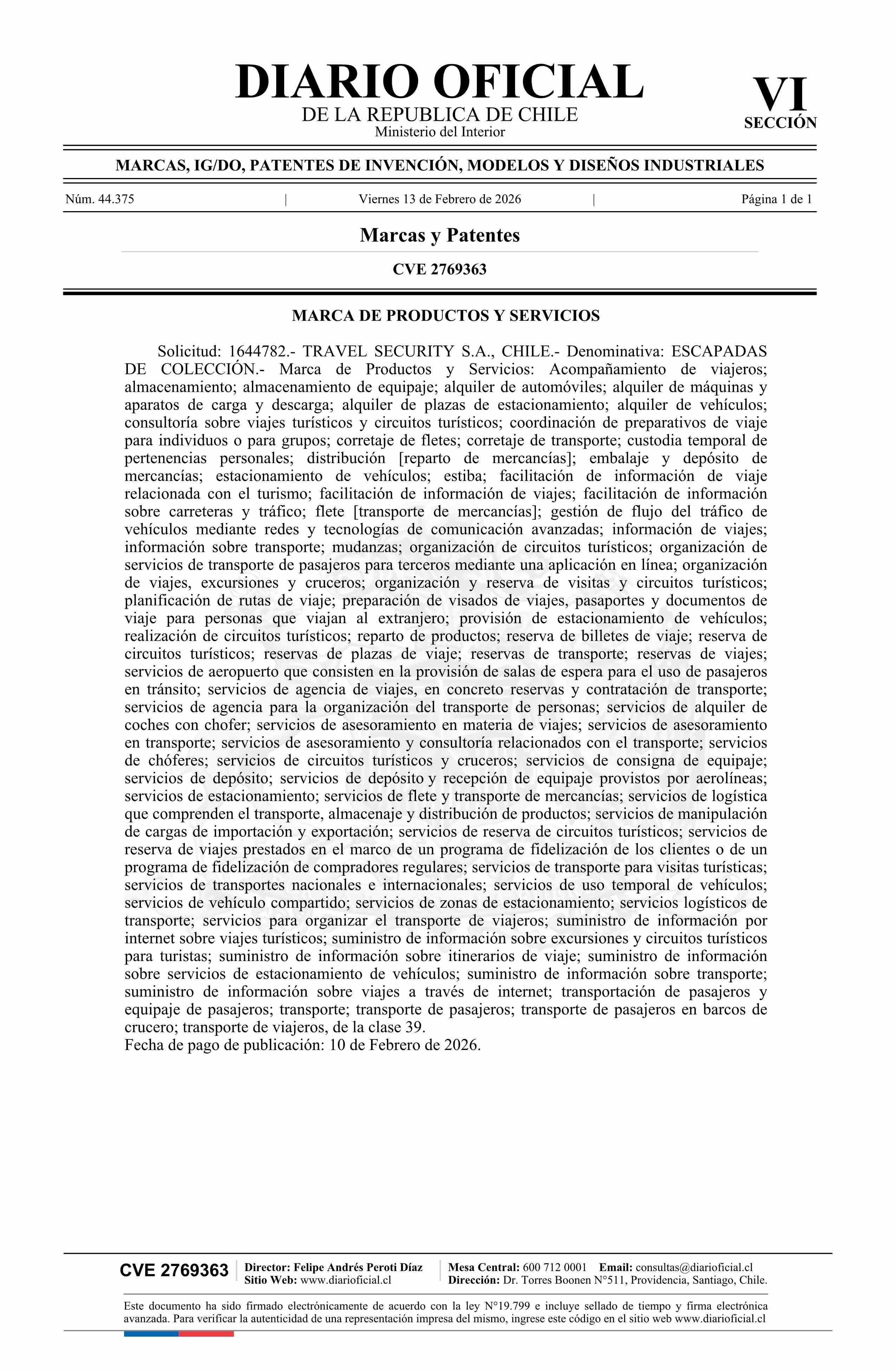 Fuente: Diario Oficial Edición Electrónica (Diario Oficial de Chile - 6 Marcas Y Patentes) Página(s): 177