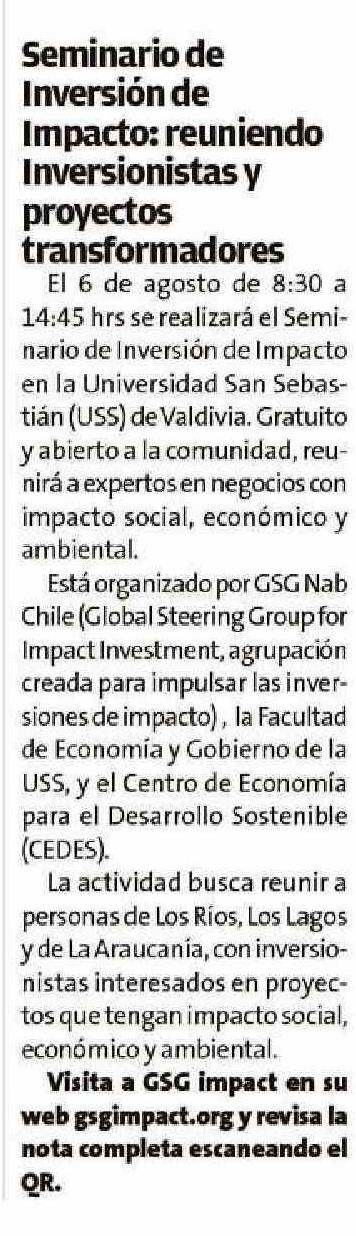 Seminario de Inversión de Impacto: reuniendo proyectos transformadores 29-07-2024 Diario Austral Región de Los Ríos |