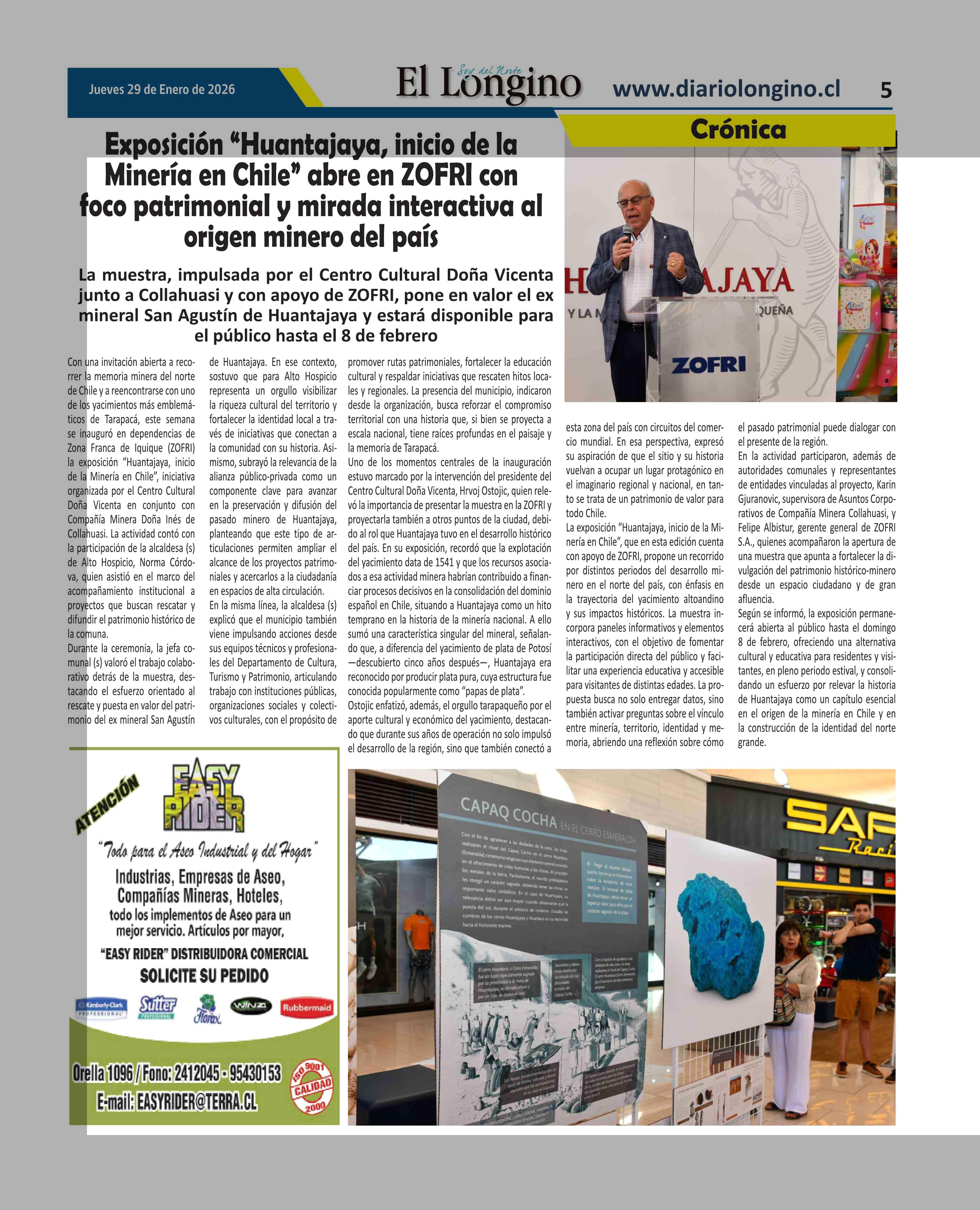 Título: Exposición "Huantajaya, inicio de la Minería en Chile" abre en ZOFRI con foco patrimonial y mirada interactiva al origen minero del país