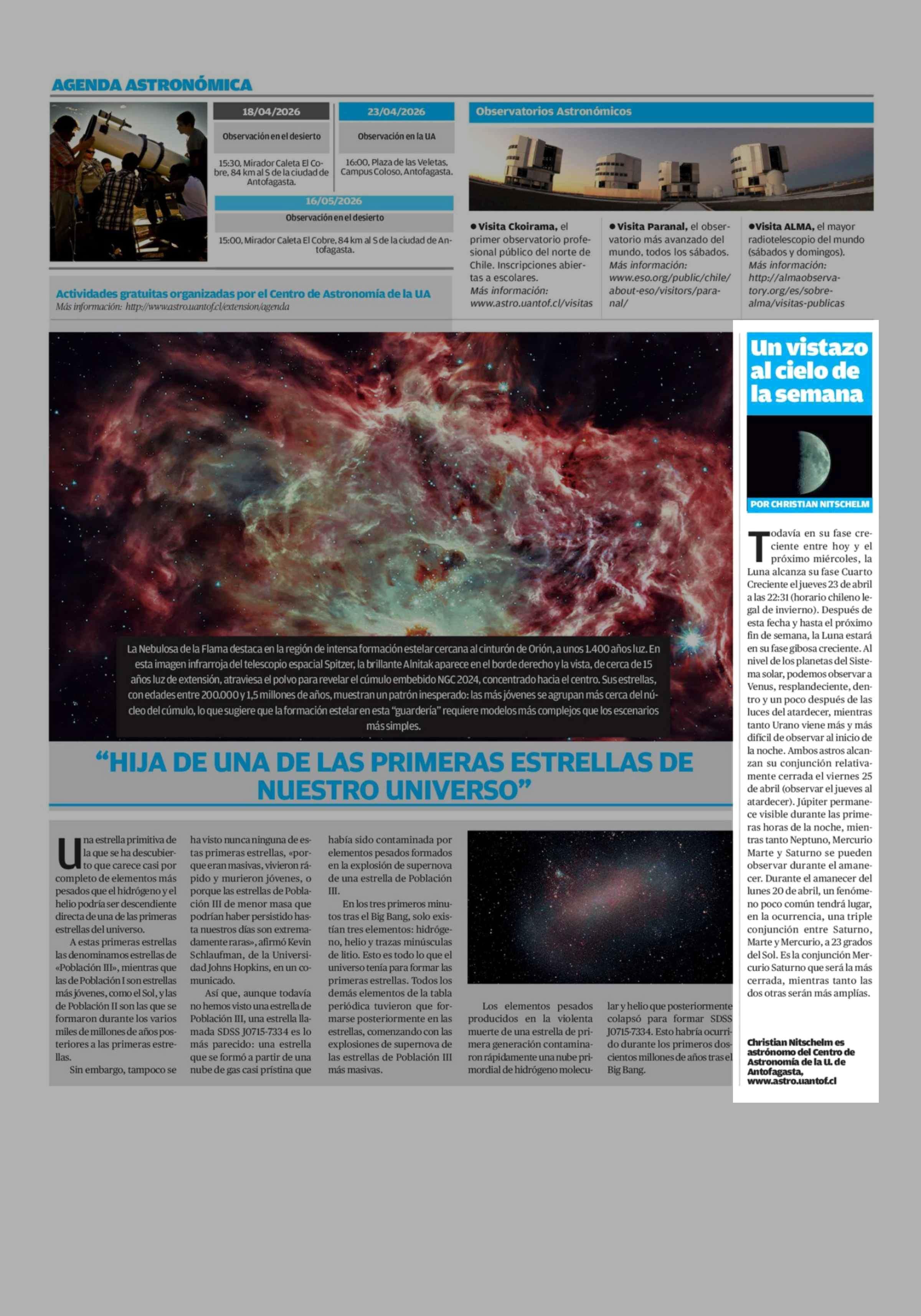 Un vistazo al cielo de la semana 19-04-2026 El Mercurio de Antofagasta |
