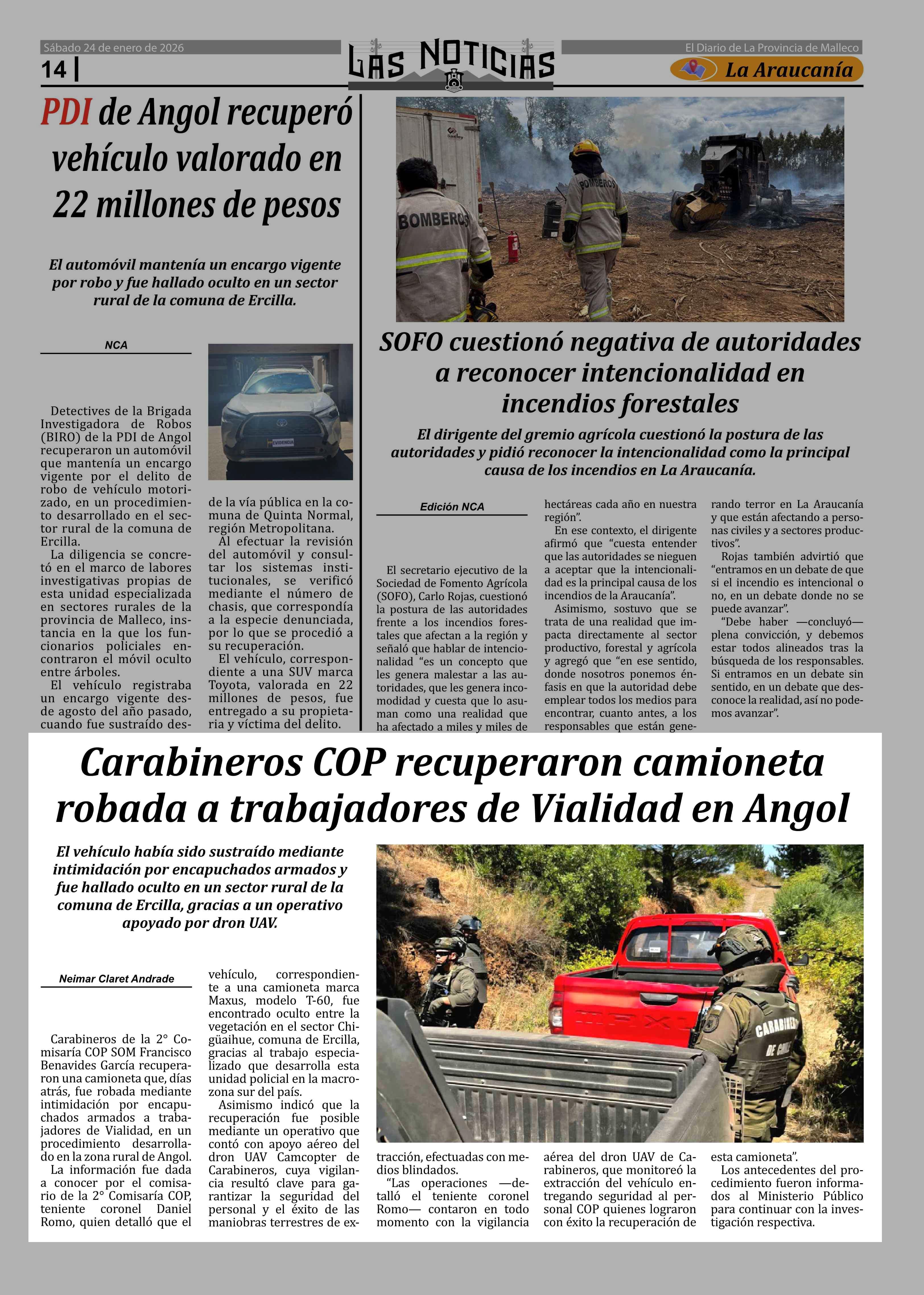 Carabineros COP recuperaron camioneta robada a trabajadores de Vialidad en Angol 24-01-2026 Las Noticias |