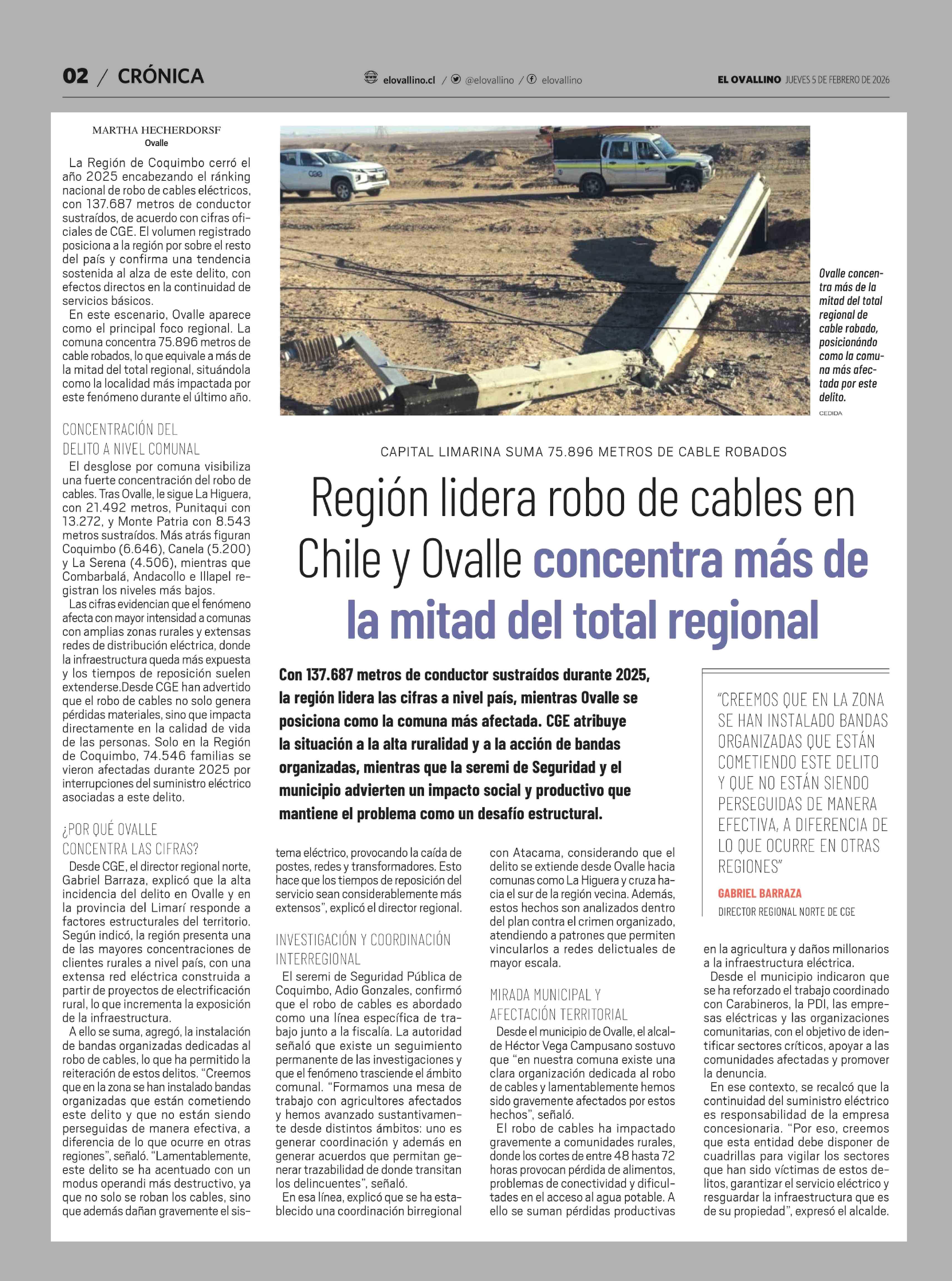 Título: Región lidera robo de cables en Chile y Ovalle concentra más de la mitad del total regional