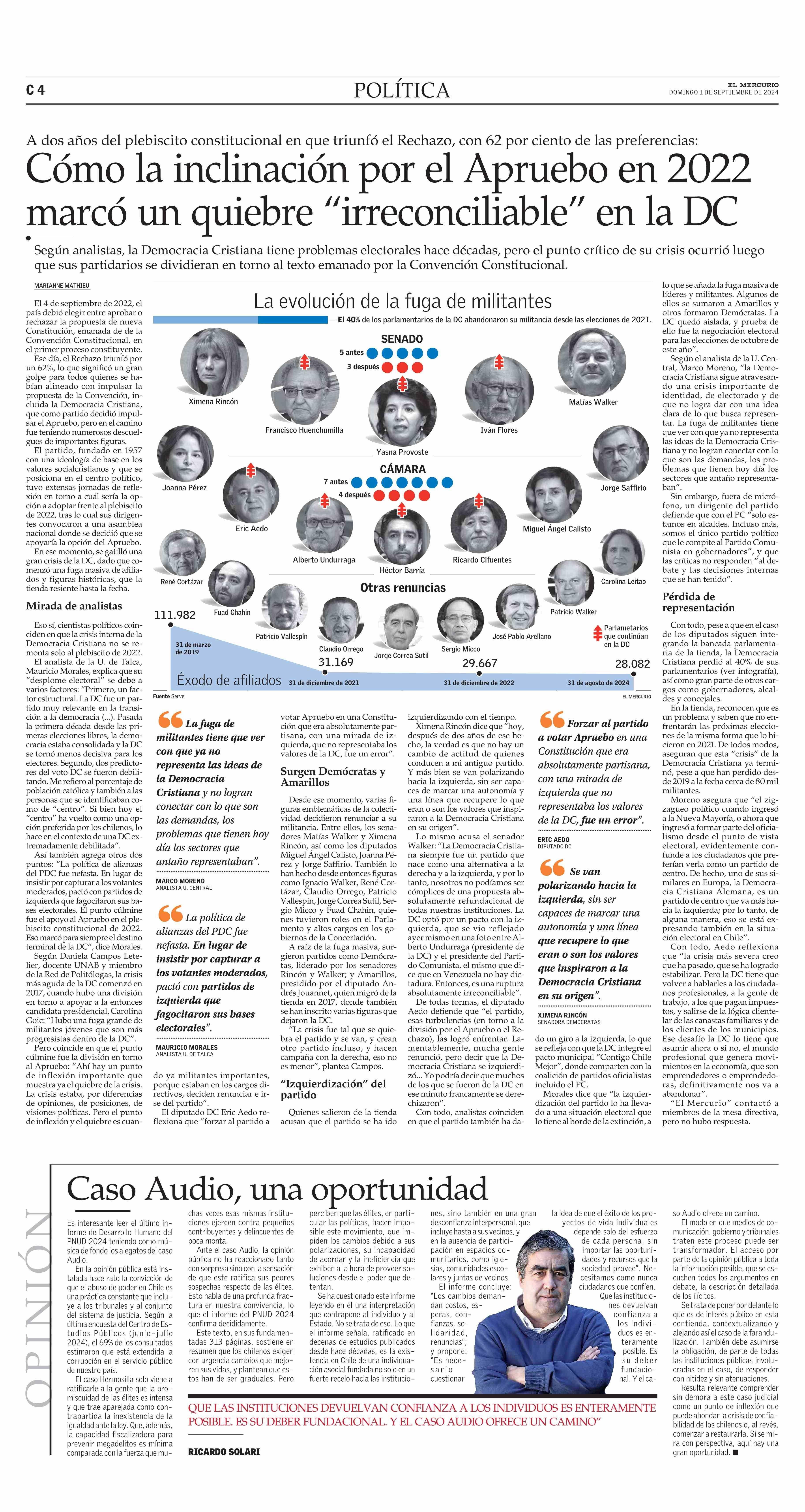 Cómo la inclinación por el Apruebo en 2022 marcó un quiebre “irreconciliable” en la DC 01-09-2024 El Mercurio |