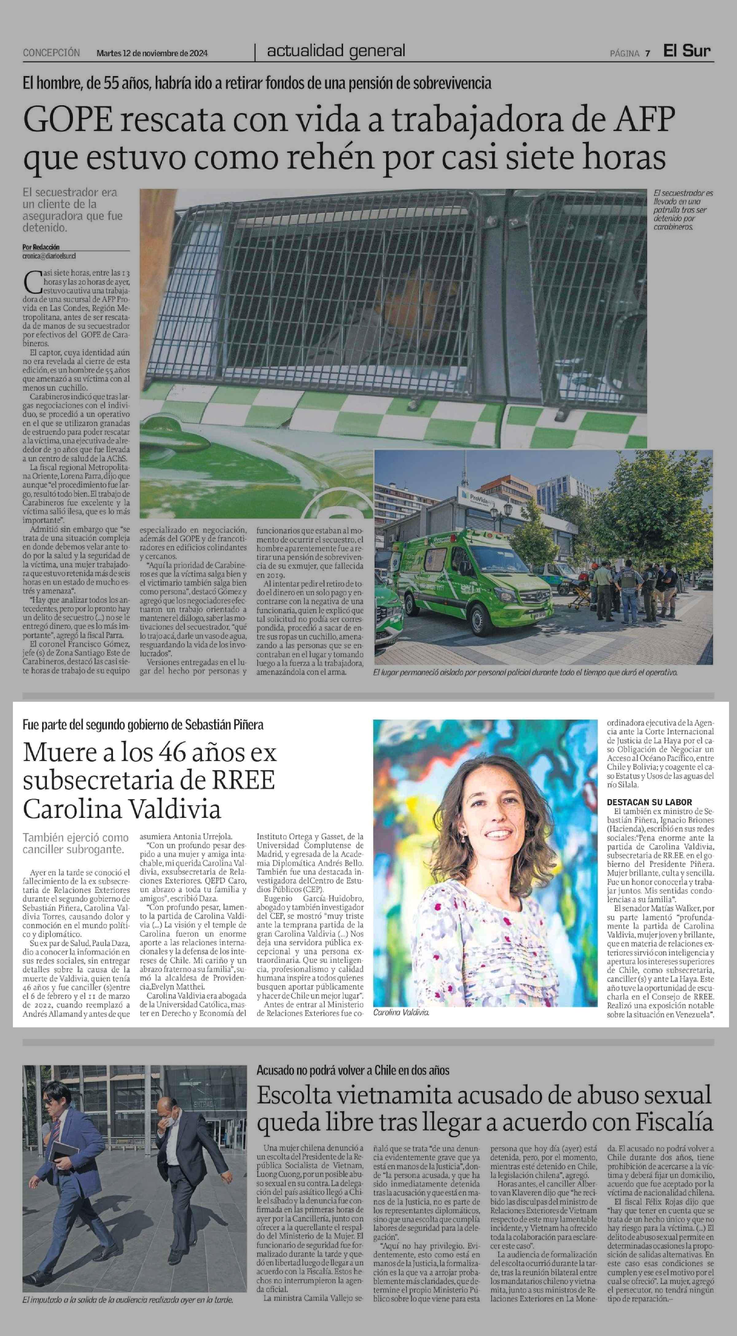 Muere a los 46 años ex subsecretaria de RREE Carolina Valdivia 12-11-2024 El Sur |