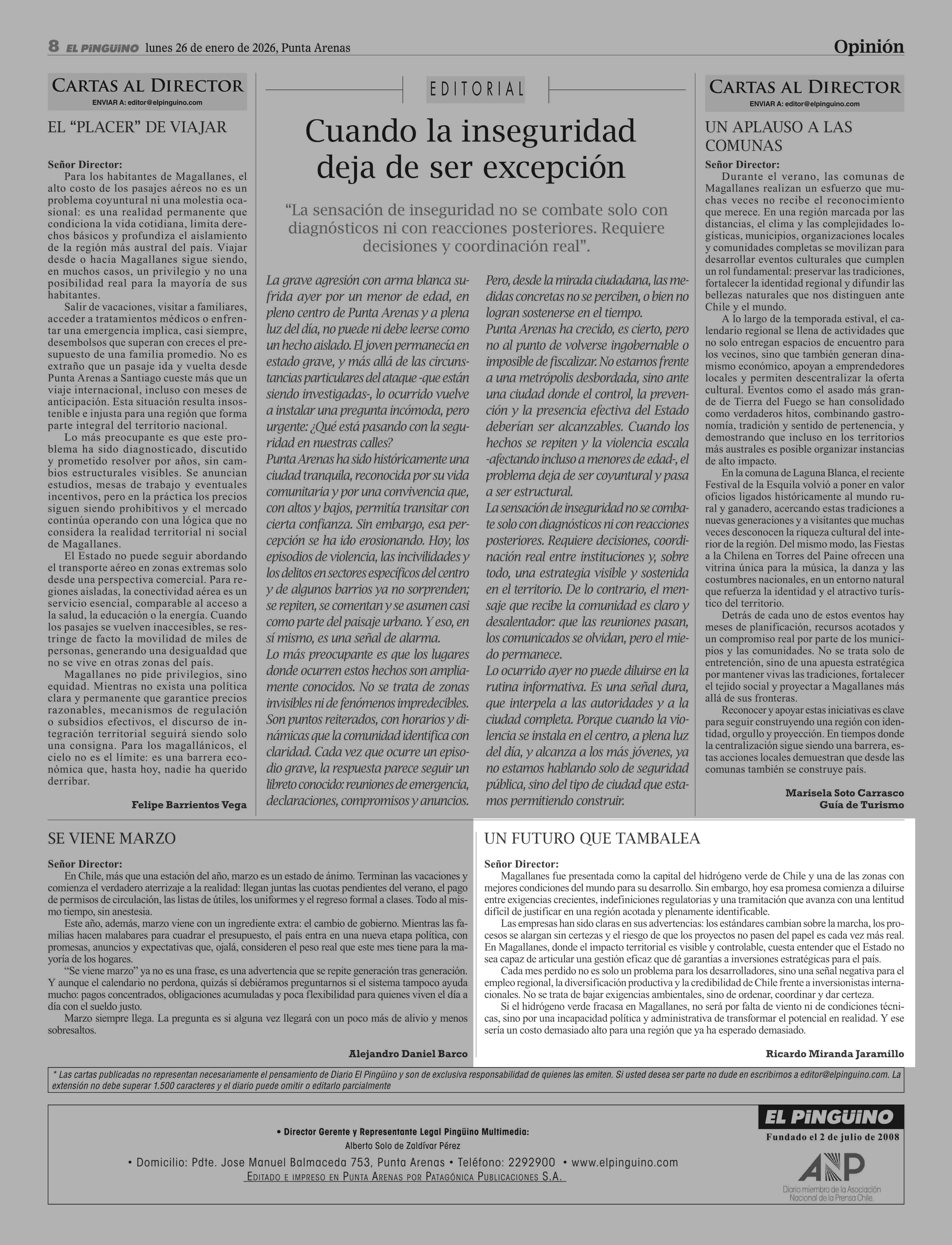 26-01-2026 El Pingüino
