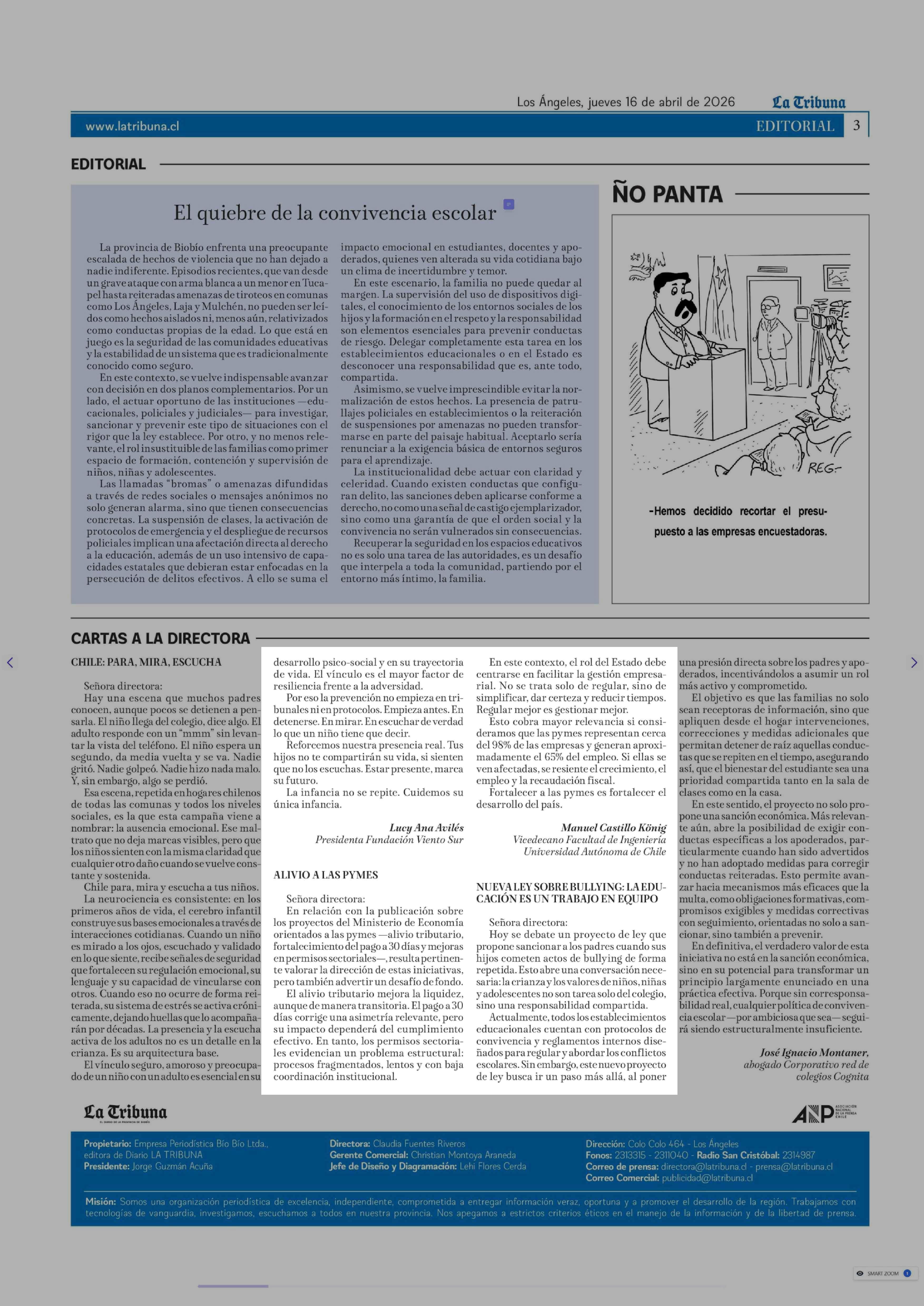 Cartas: ALIVIO A LAS PYMES 16-04-2026 La Tribuna |