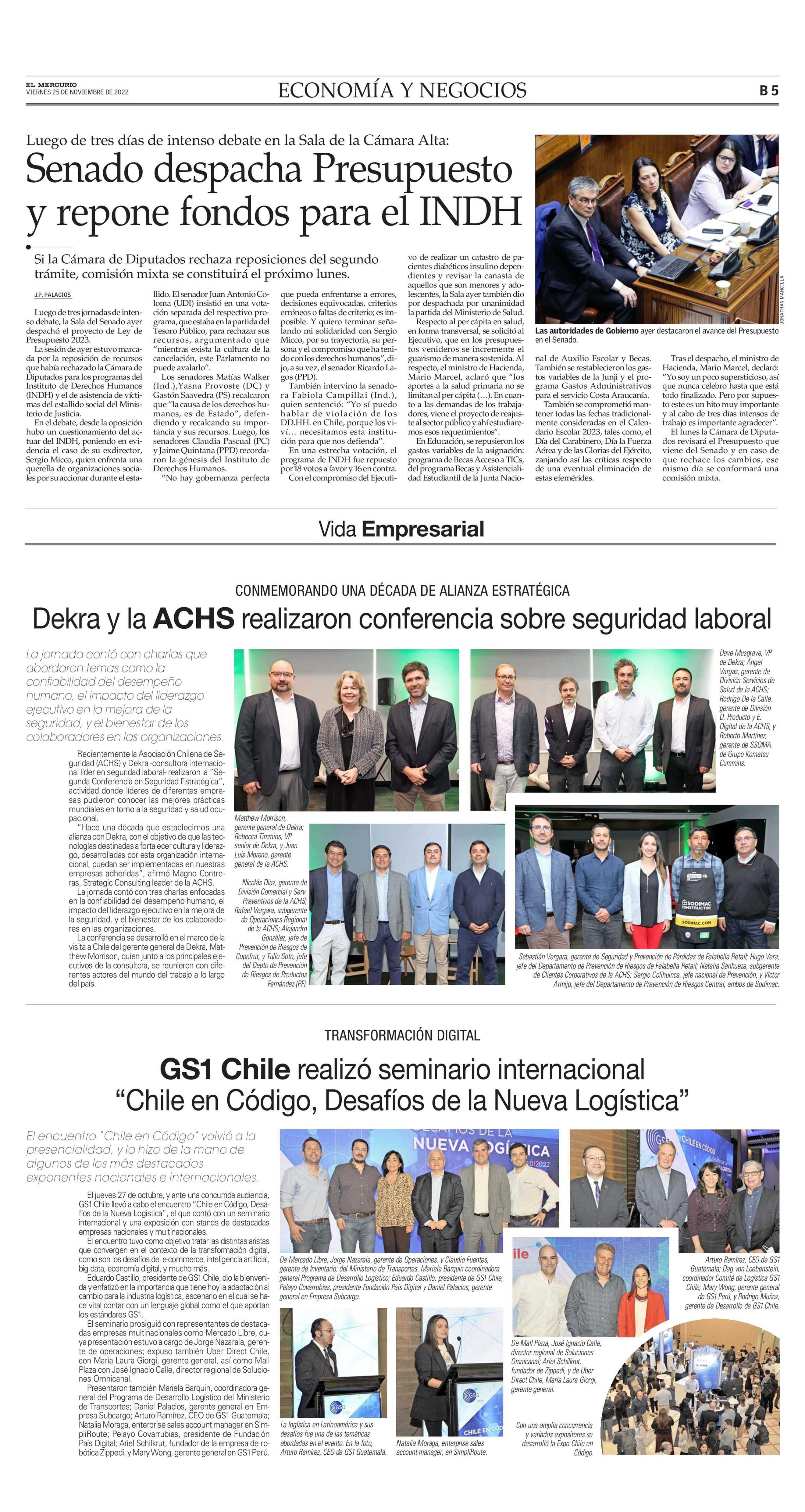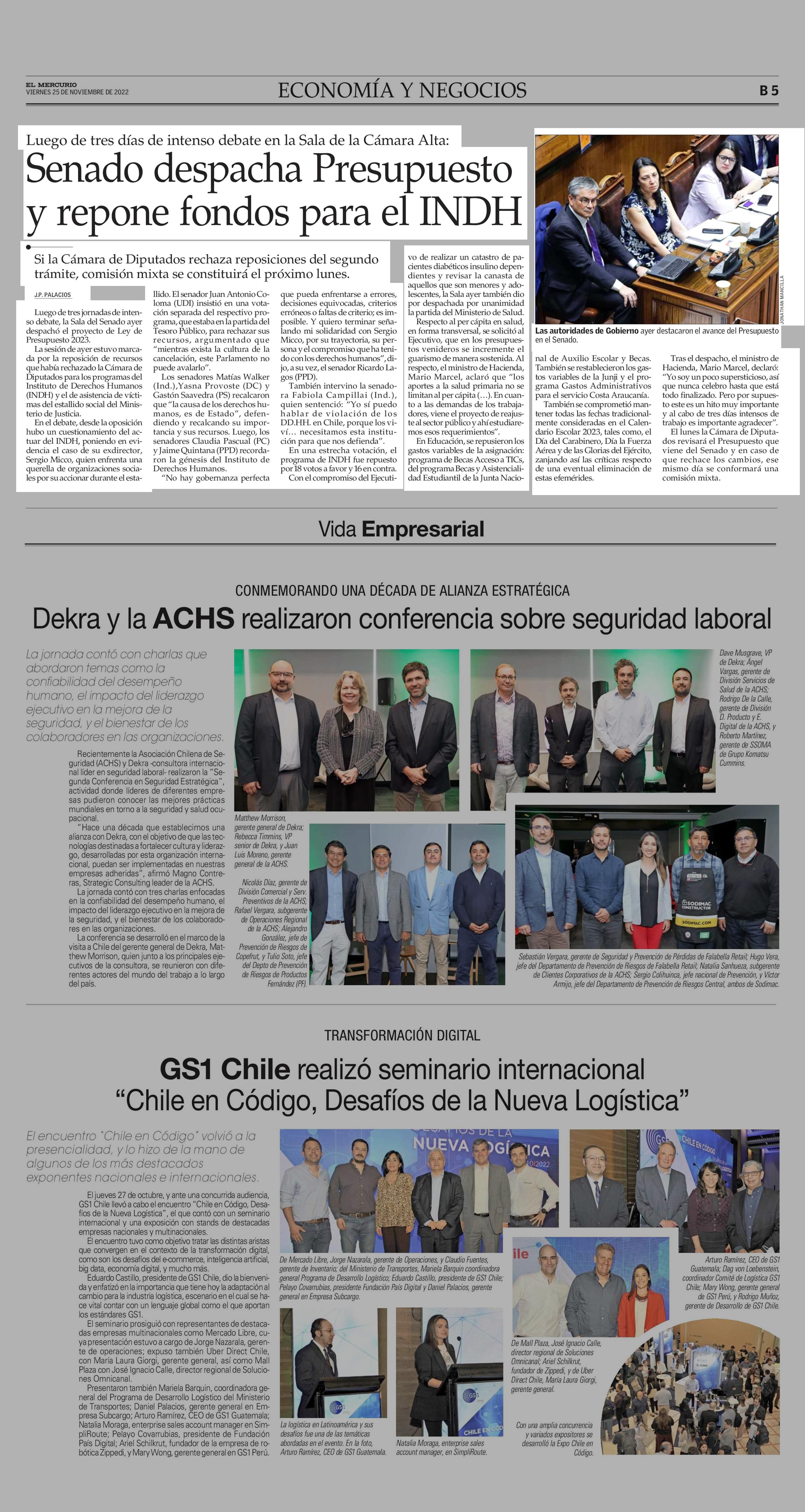 Senado despacha Presupuesto y repone fondos para el INDH 25-11-2022 El Mercurio |