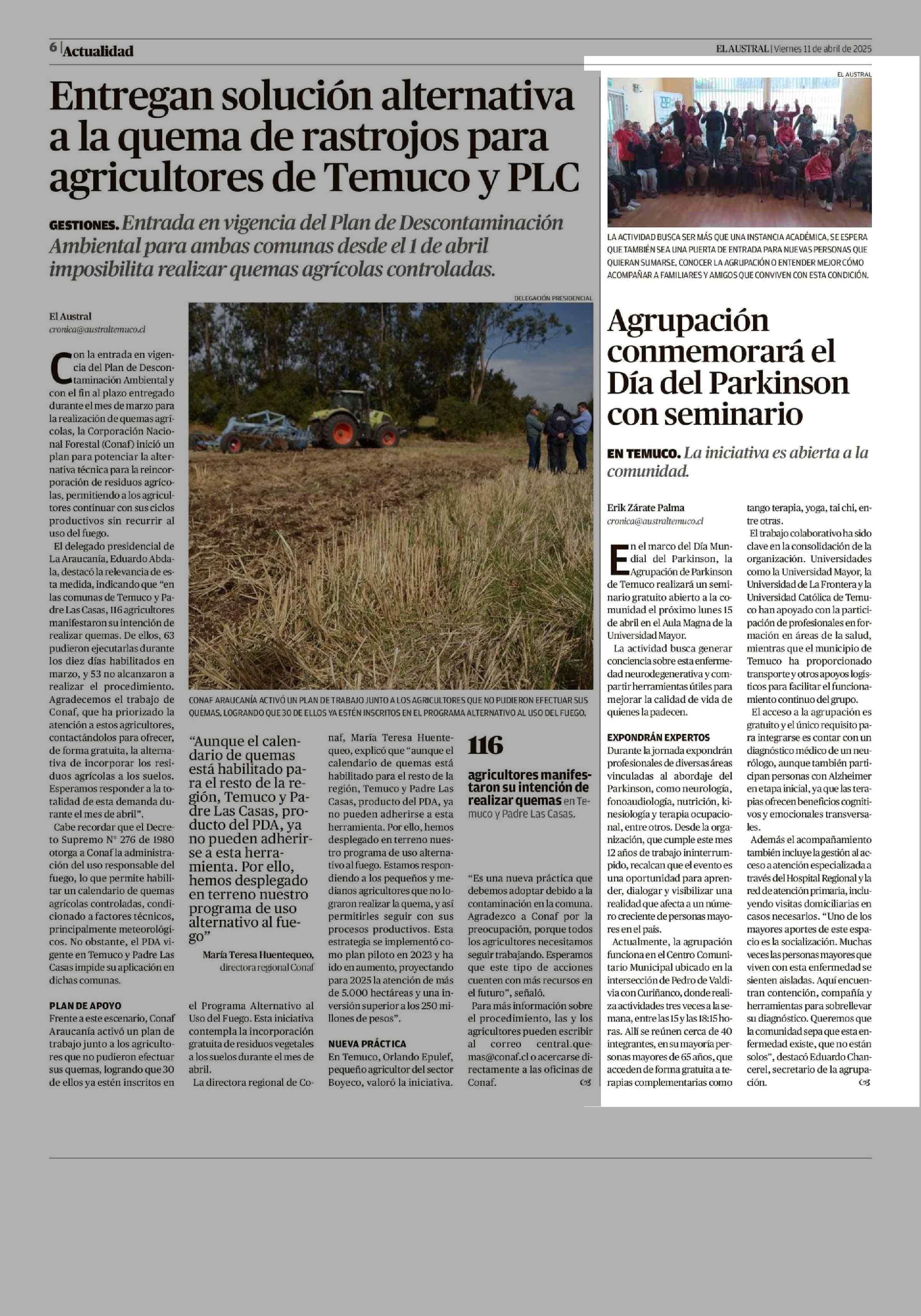 Agrupación conmemorará el Día del Parkinson con seminario 11-04-2025 El Austral de la Araucanía |