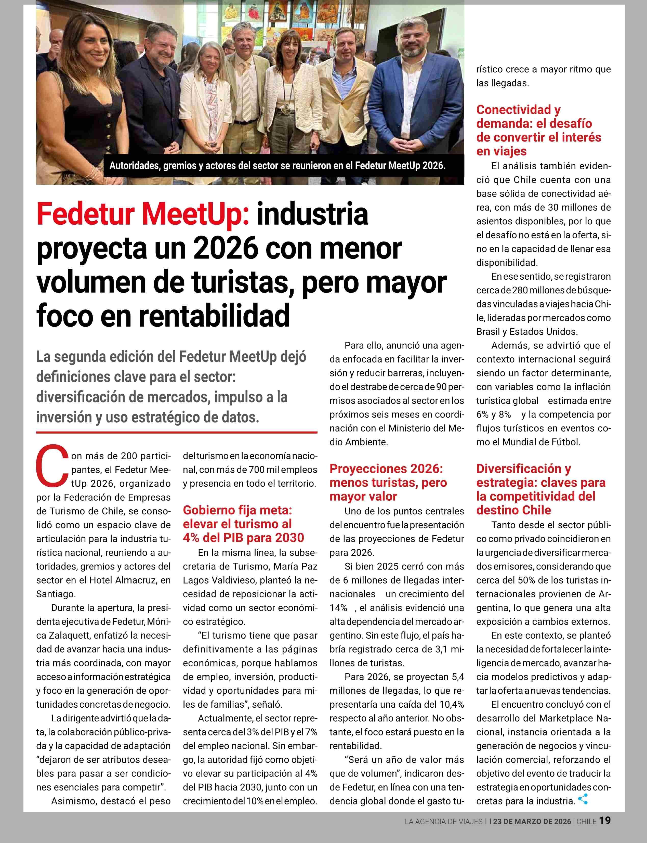 Fedetur MeetUp: industria proyecta un 2026 con menor volumen de turistas, pero mayor foco en rentabilidad 27-03-2026 Revista La Agencia de Viajes |