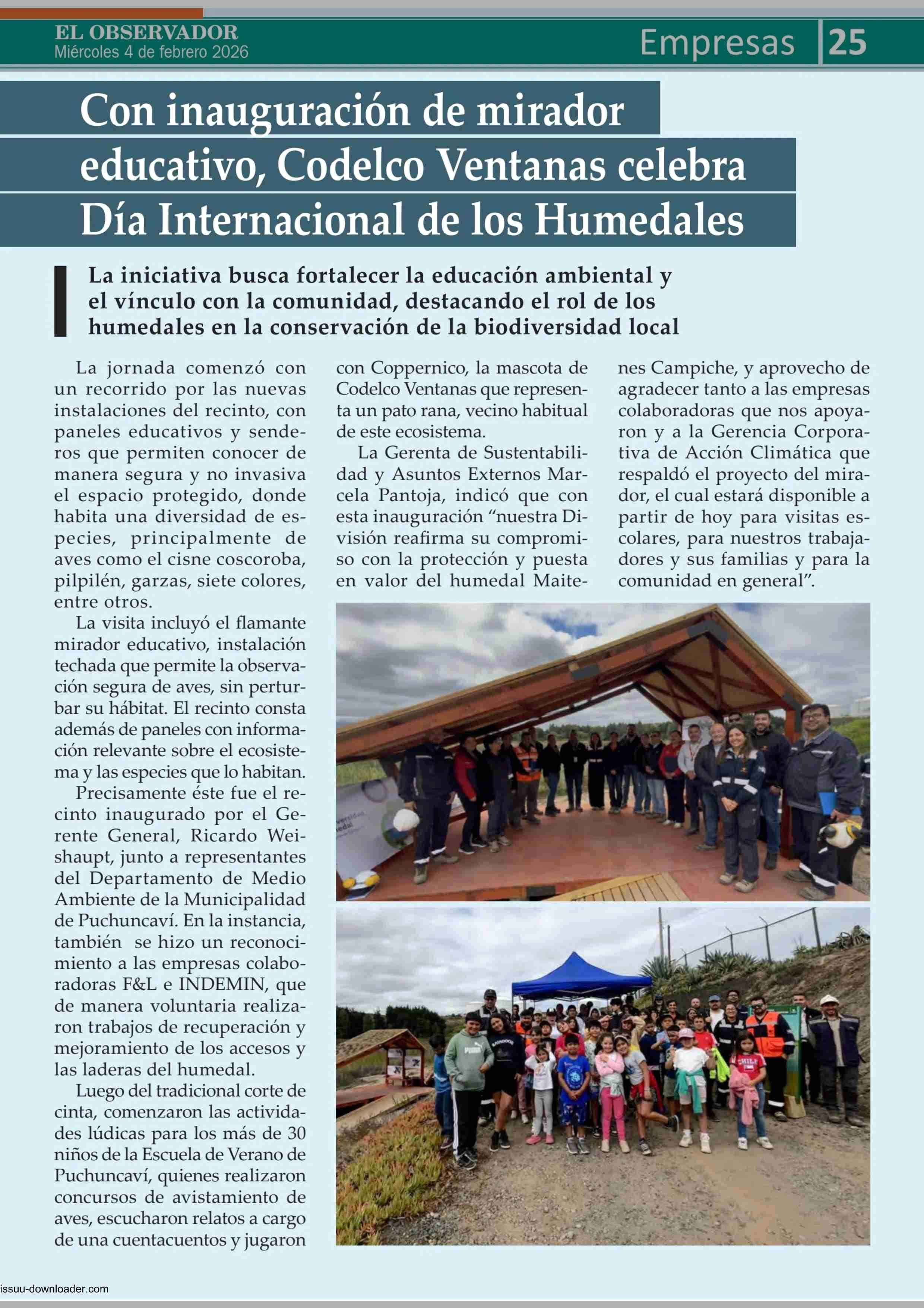 Título: Con inauguración de mirador Codelco Ventanas celebra Día Internacional de los Humedales