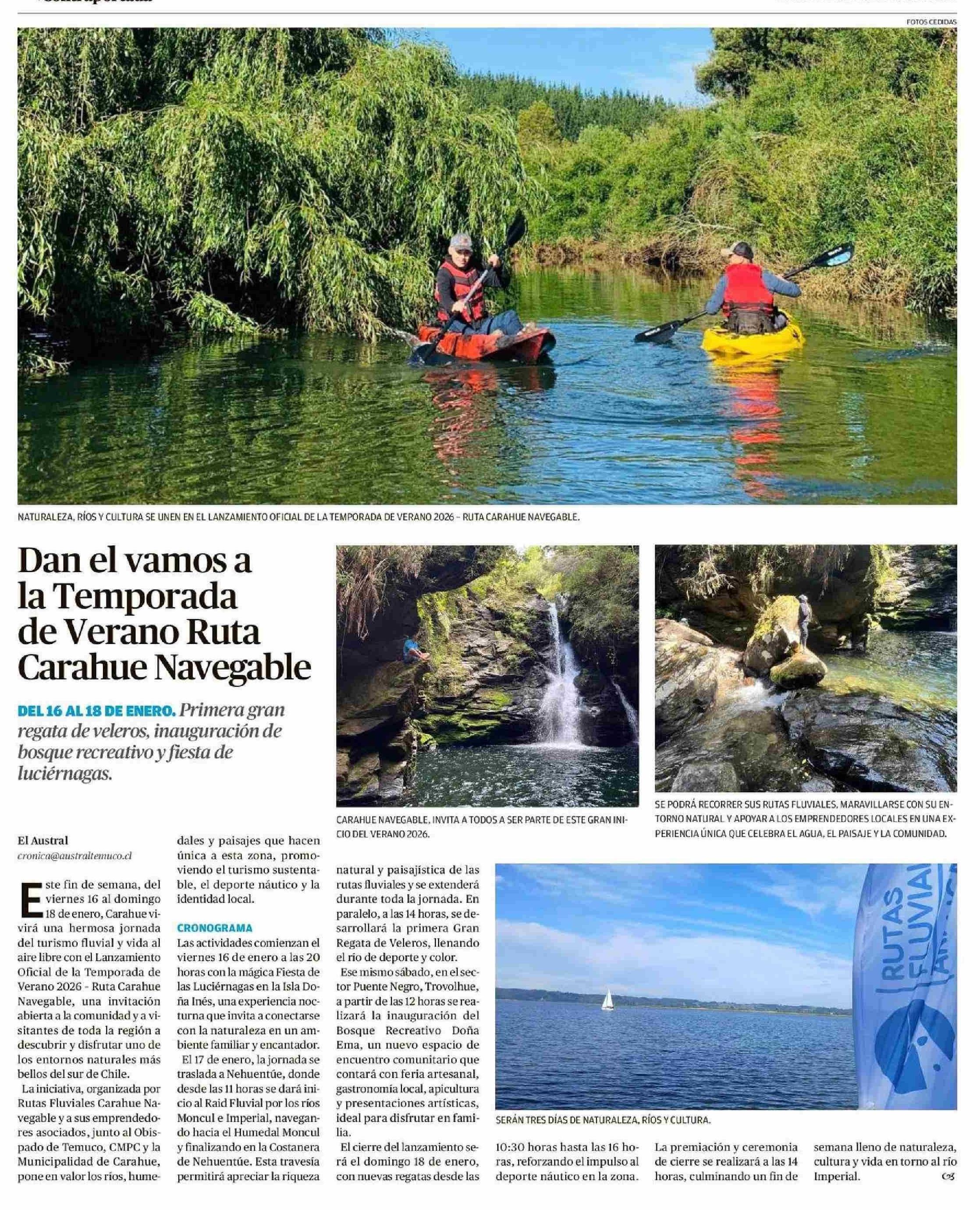 Título: Dan el vamos a la Temporada de Verano Ruta Carahue Navegable