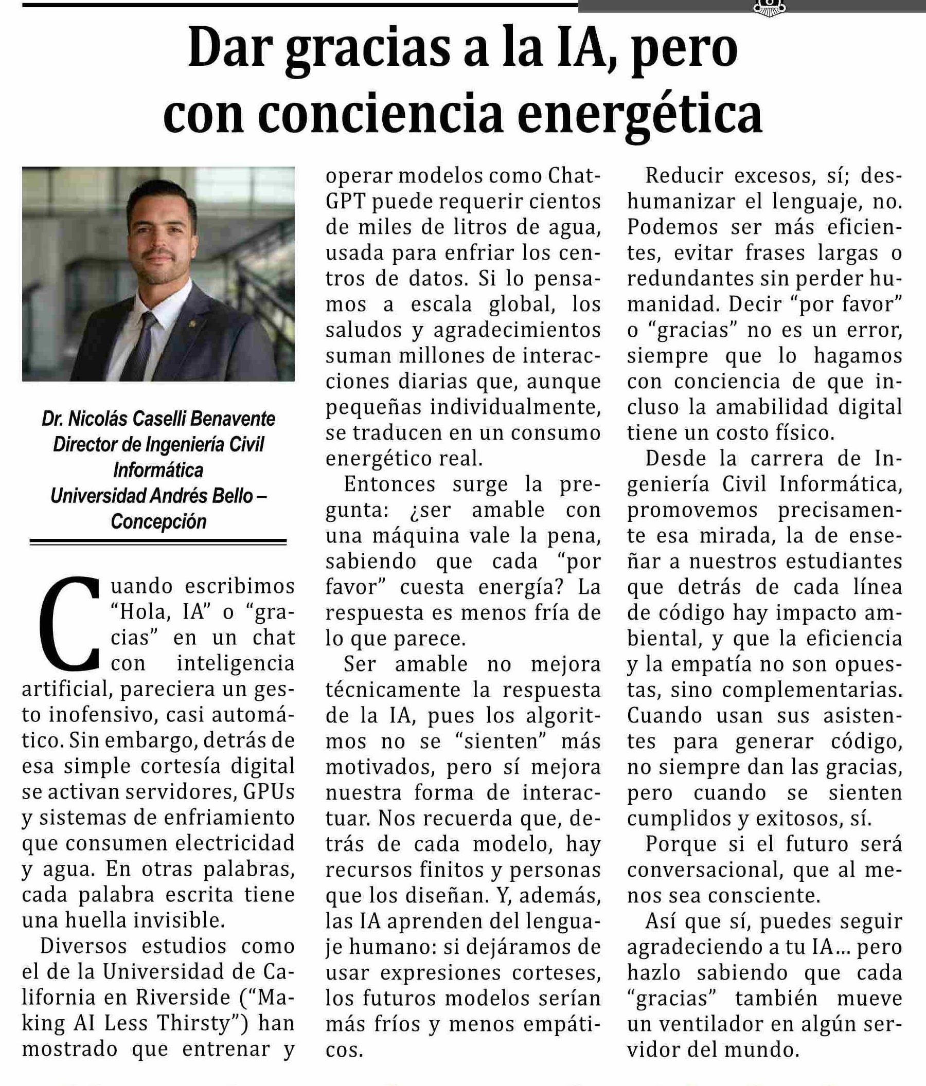| Título: | Columnas de Opinión: Dar gracias a la IA, pero con conciencia energética |