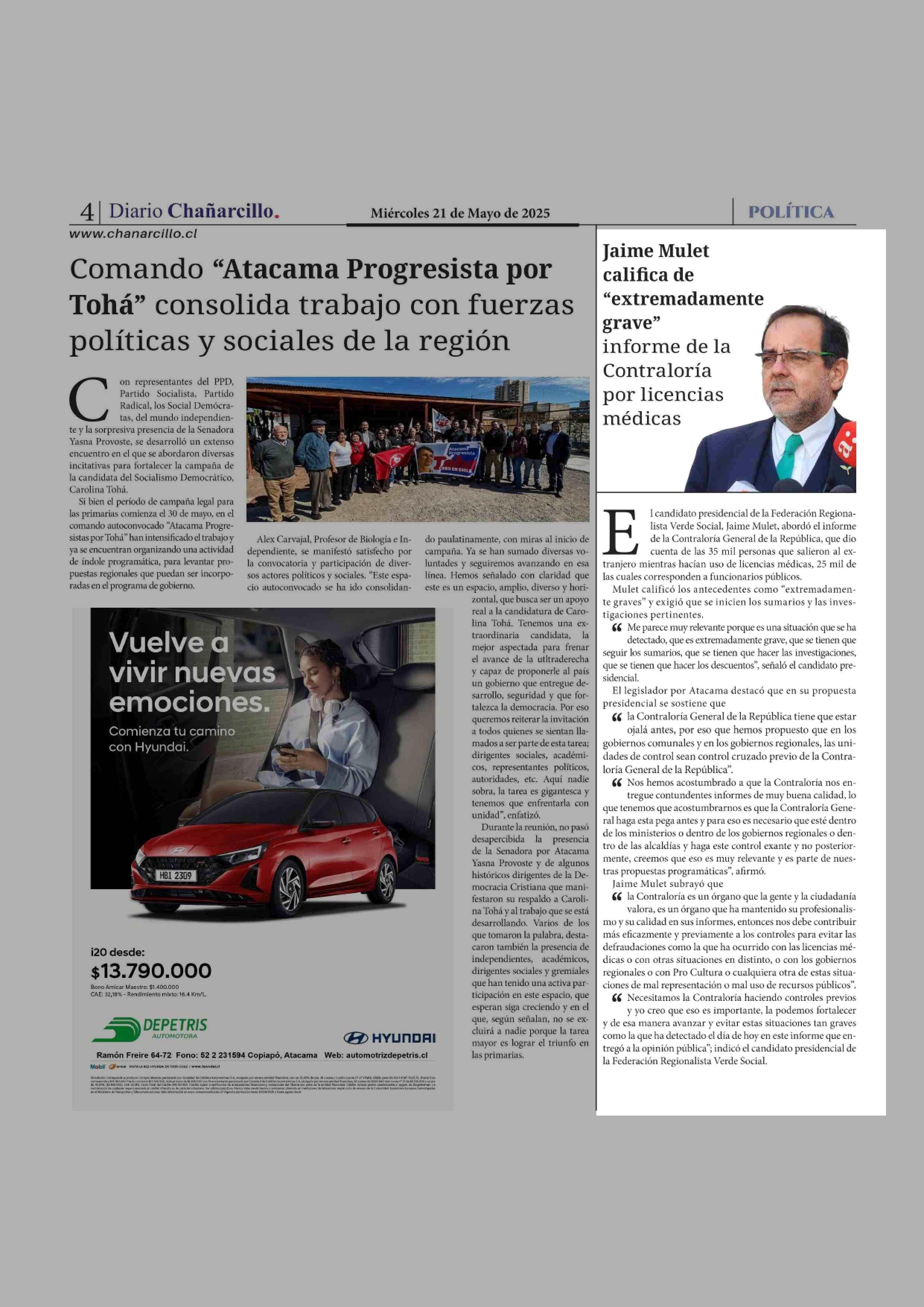 Jaime Mulet califica de "extremadamente Contraloría por licencias médicas médicas médicas médicas 21-05-2025 Diario Chañarcillo |