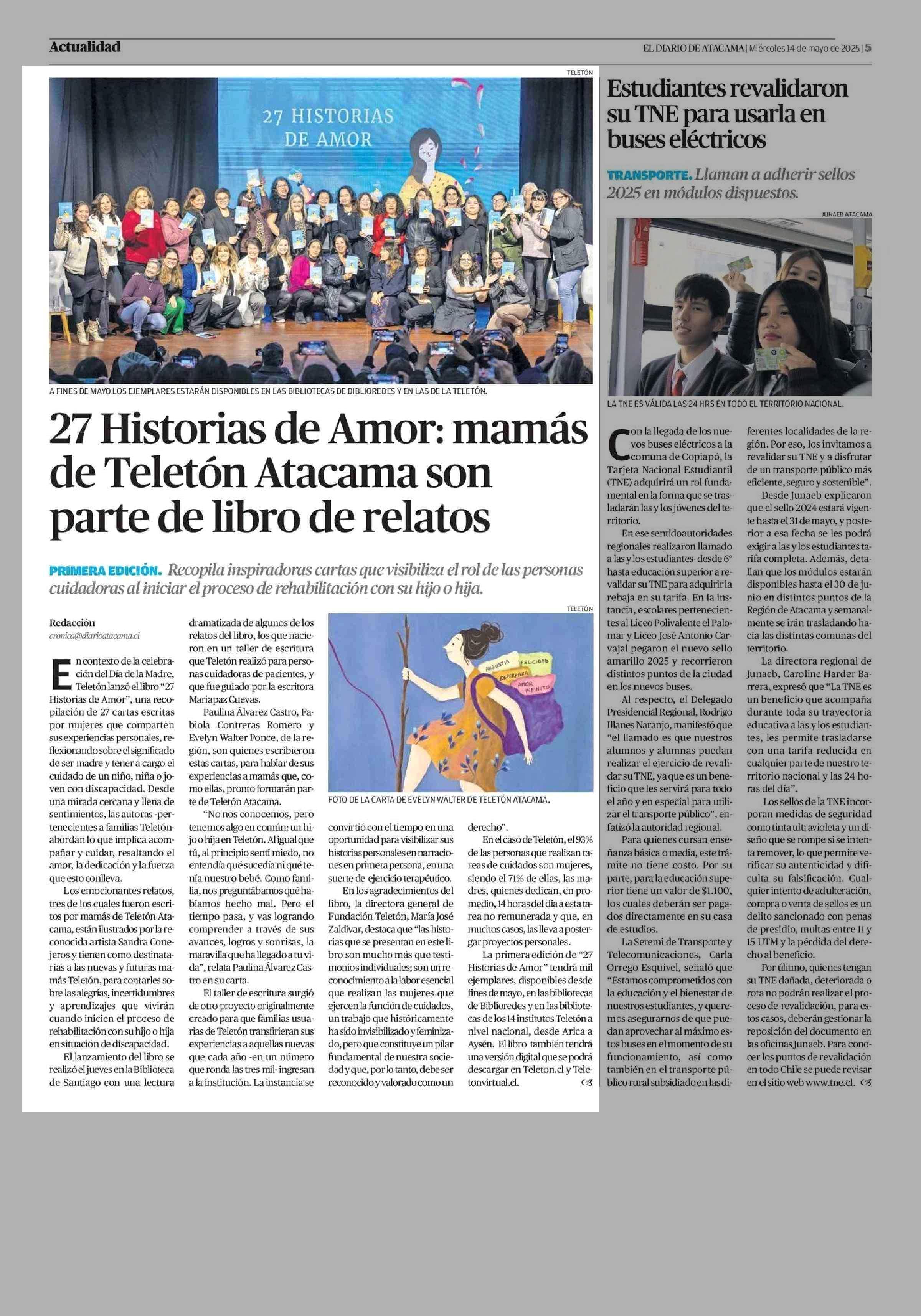 27 Historias de Amor: mamás de Teletón Atacama son parte de libro de relatos 14-05-2025 El Diario de Atacama |
