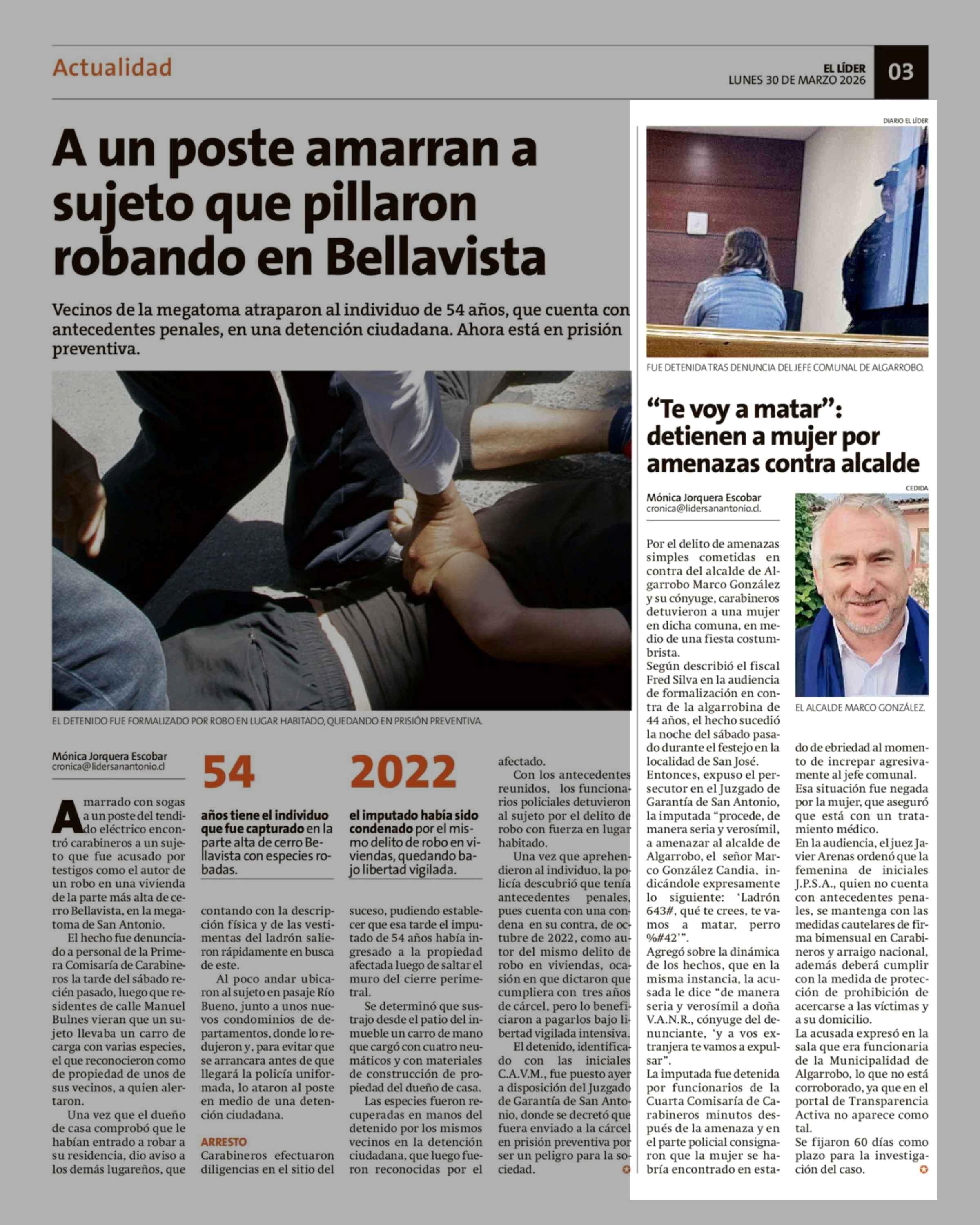 "Te voy a matar": detienen a mujer por amenazas contra alcalde 30-03-2026 El Líder |