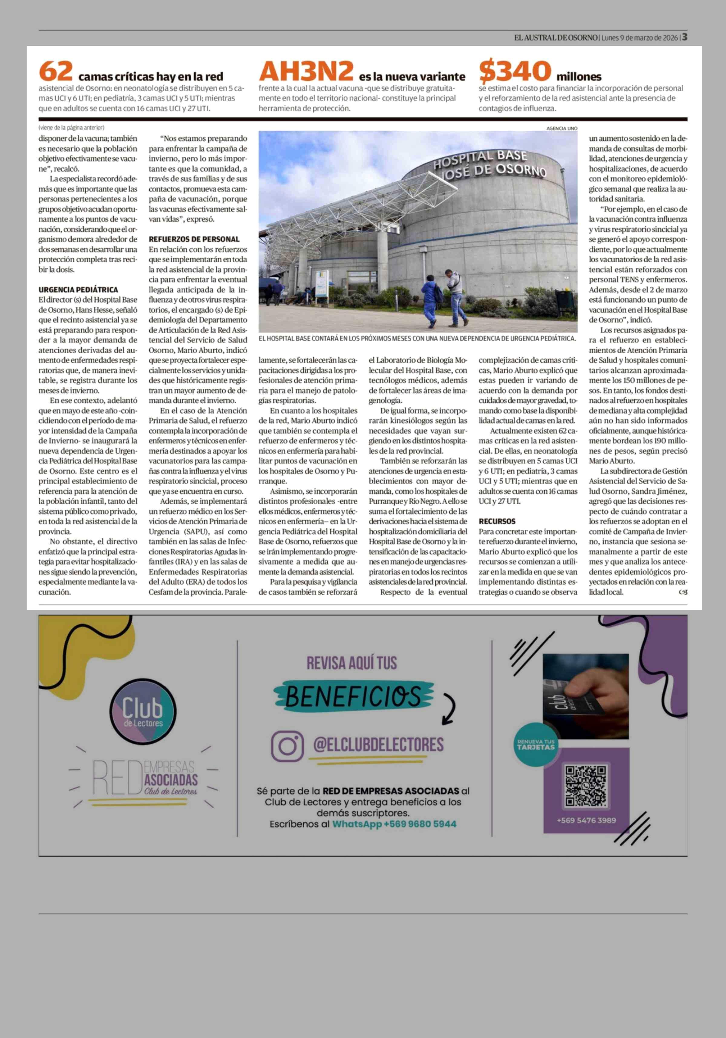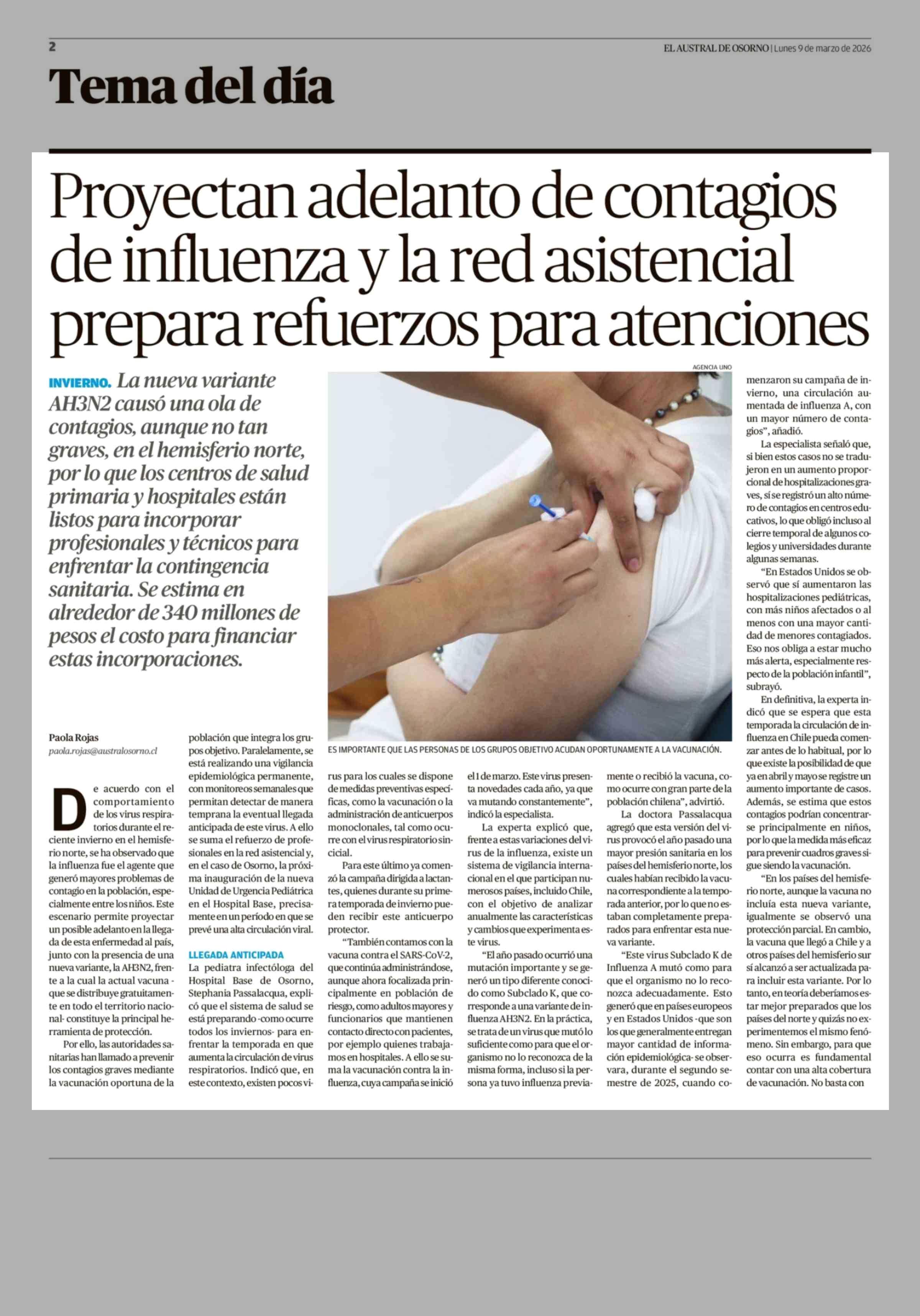 Proyectan adelanto de contagios de influenza y la red asistencial prepara refuerzos para atenciones 09-03-2026 El Austral de Osorno |